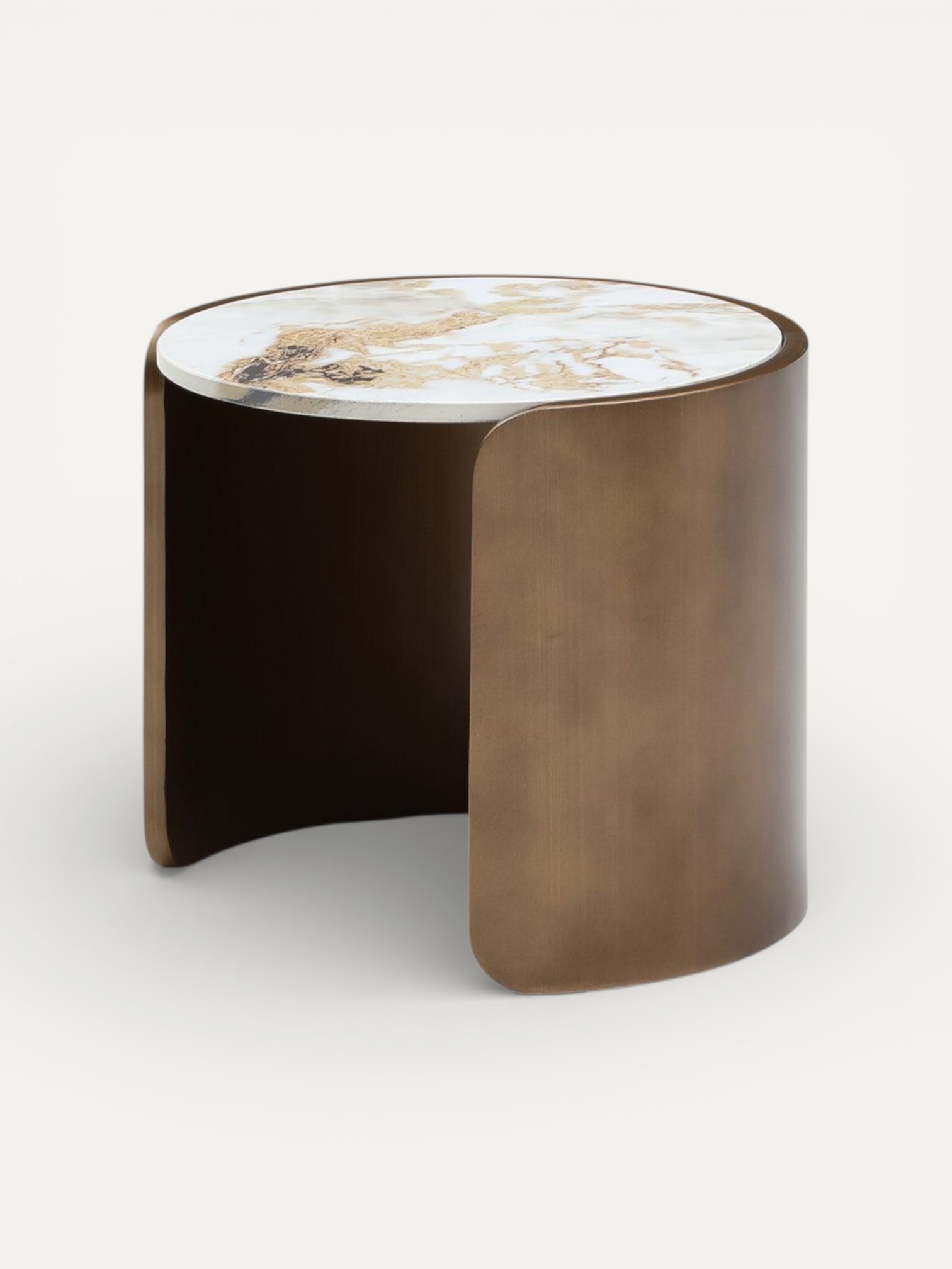Композиция из двух журнальных столиков Bliss различного диаметра и высоты, настоящий пример современной роскоши и стиля, 12ти миллиметровая керамическая столешница с уникальным мраморным рисунком плавно переходит в матовое бронзовое основание.