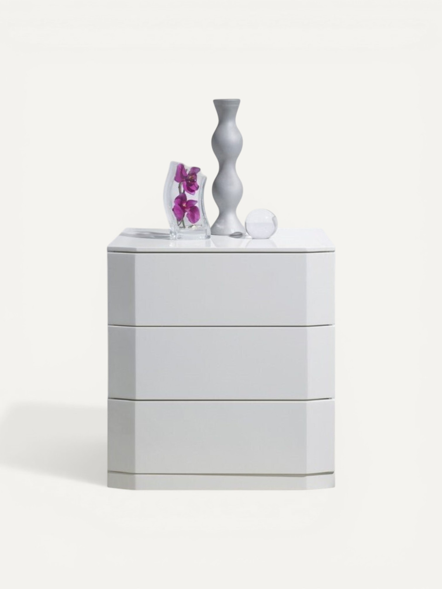 Этот мини-комод от Дюпен отличается от обычных прикроватных тумбочек своими размерами, больше напоминая комод. В нем предусмотрено три ящика, которые могут быть легко выдвинуты благодаря механизму типа Push. Такой дизайн делает его оригинальным и удобным в использовании. Помимо стильного внешнего вида, он также является практичным элементом мебели, идеальным для размещения в вашей спальне.