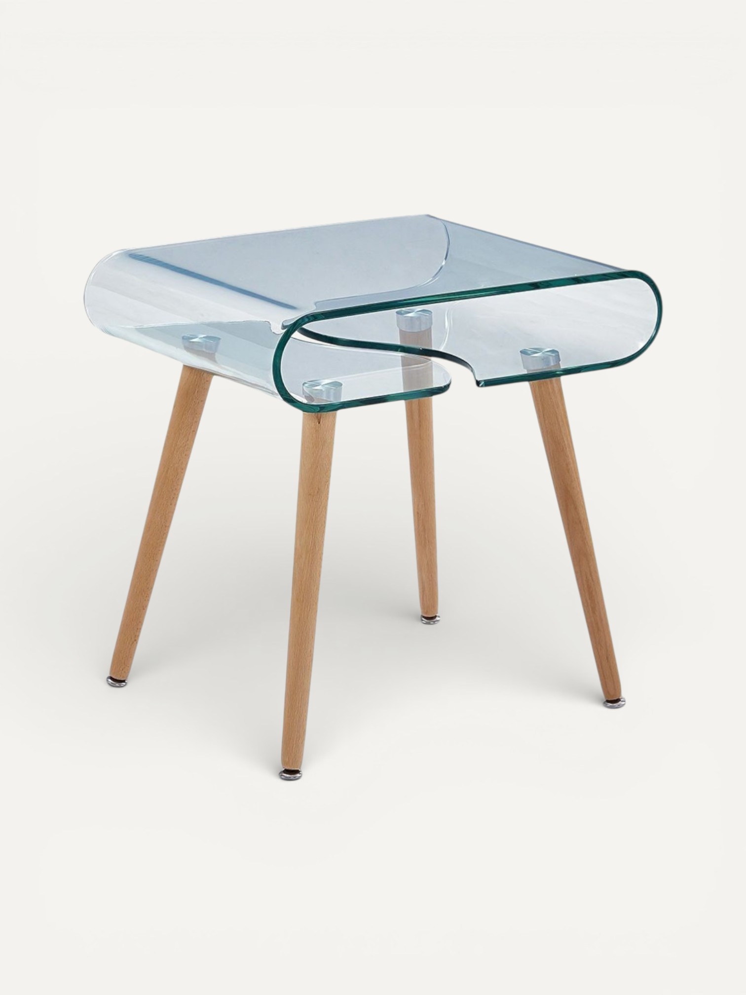 Журнальный стол Dolcevi с деревянными ножками в оттенке бука представляет собой элегантное решение для вашего интерьера. Оригинальная столешница выполнена из гнутого стекла толщиной 10 мм с защитной пленкой, создавая изысканный и стильный облик.