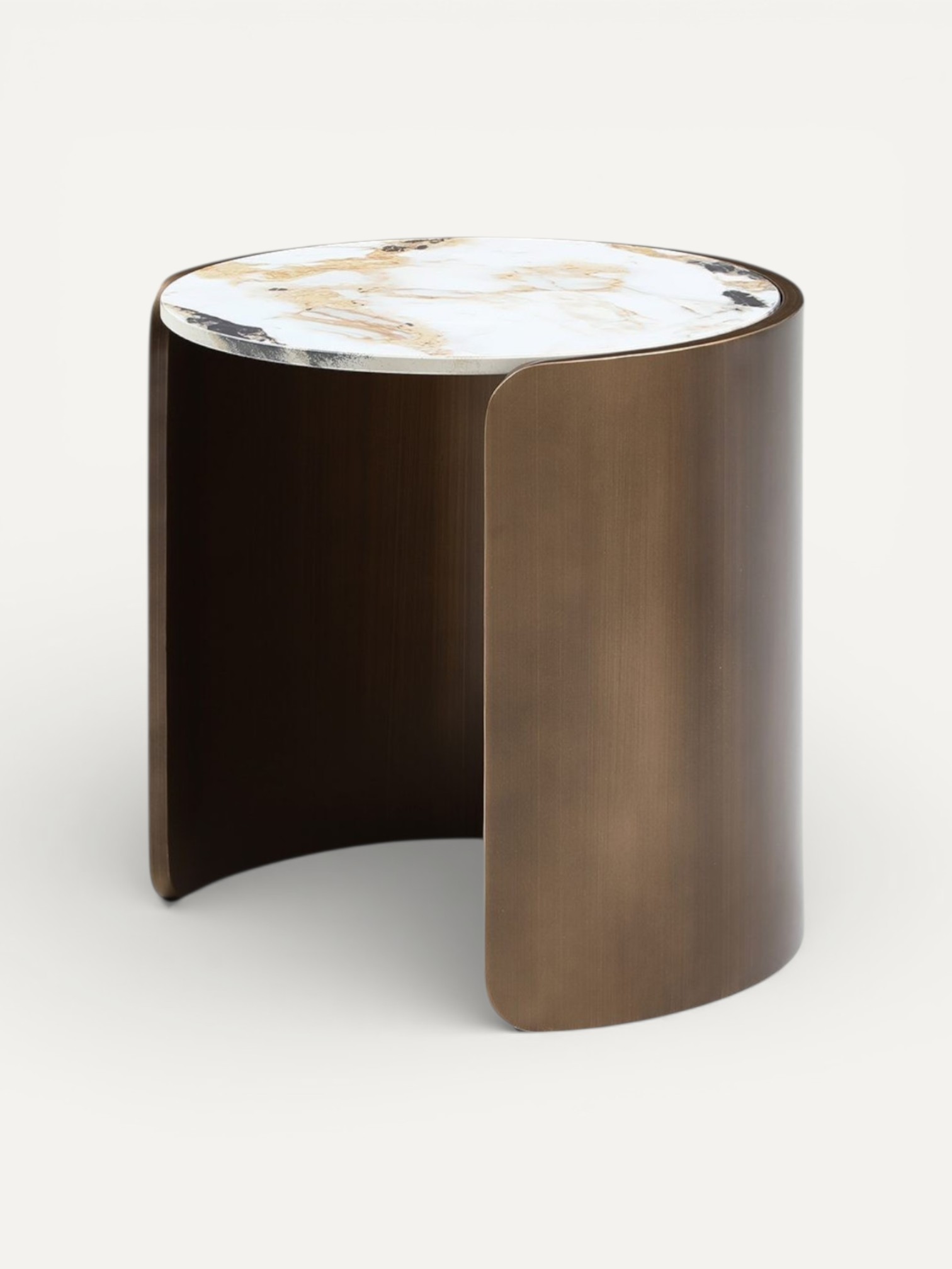Композиция из двух журнальных столиков Bliss различного диаметра и высоты, настоящий пример современной роскоши и стиля, 12ти миллиметровая керамическая столешница с уникальным мраморным рисунком плавно переходит в матовое бронзовое основание. Изделия можно удачно гармонировать между собой, а можно смело использовать по отдельности, как в гостиной и лаунж-зоне, так и в качестве прикроватного столика, они органично дополнят концепцию современных интерьеров в различных стилистиках.