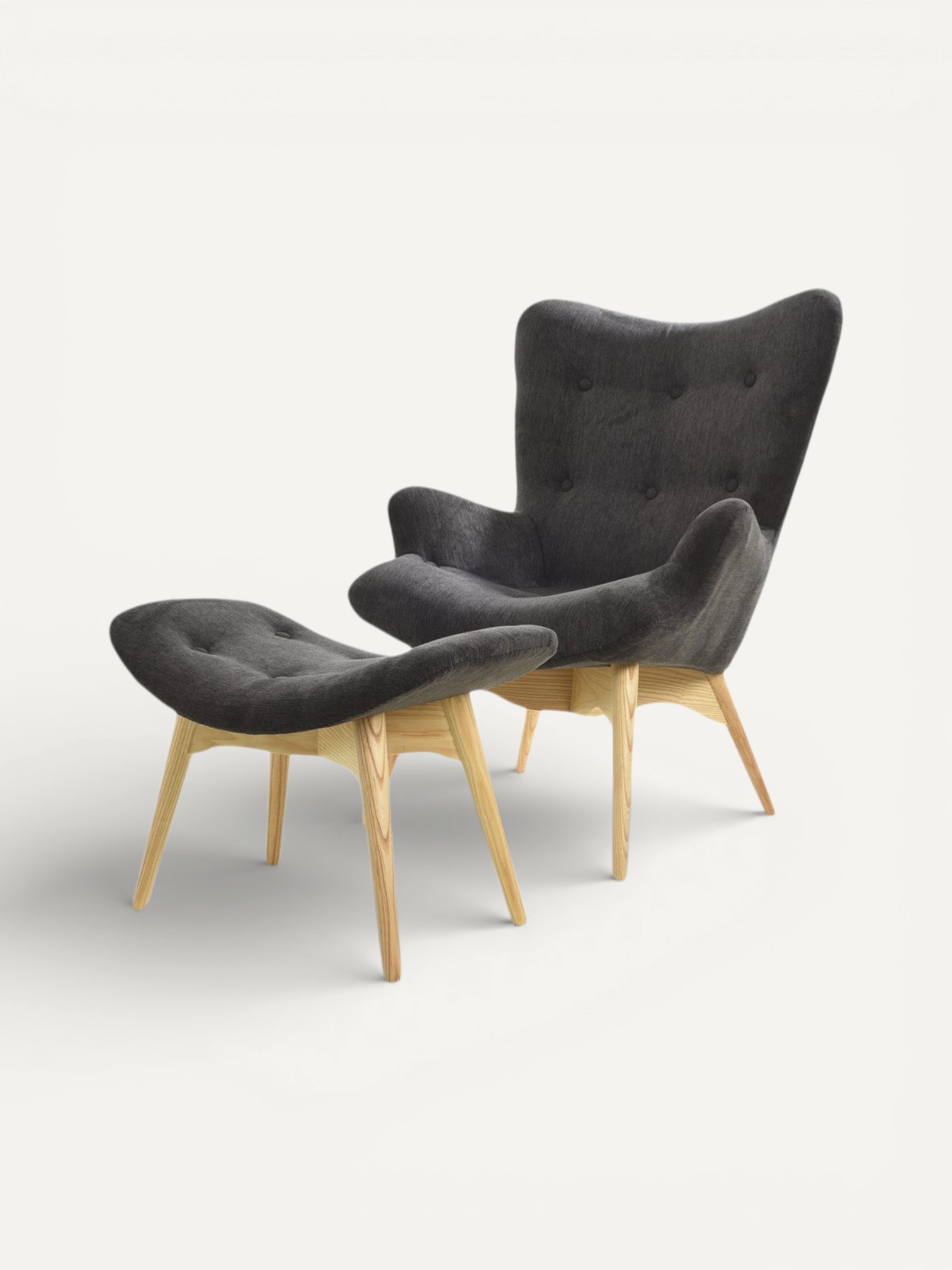 Рассматриваемая модель кресла, окрашенная в стильный графитовый цвет, дополнена ножками из ясеня.