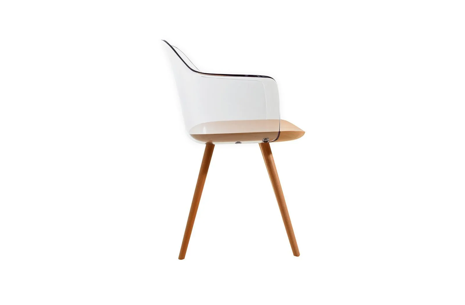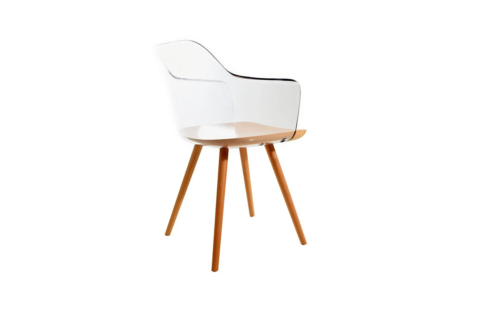 Стул ALADIAN с подлокотниками пластиковый с деревянными ножками / Прозрачный.