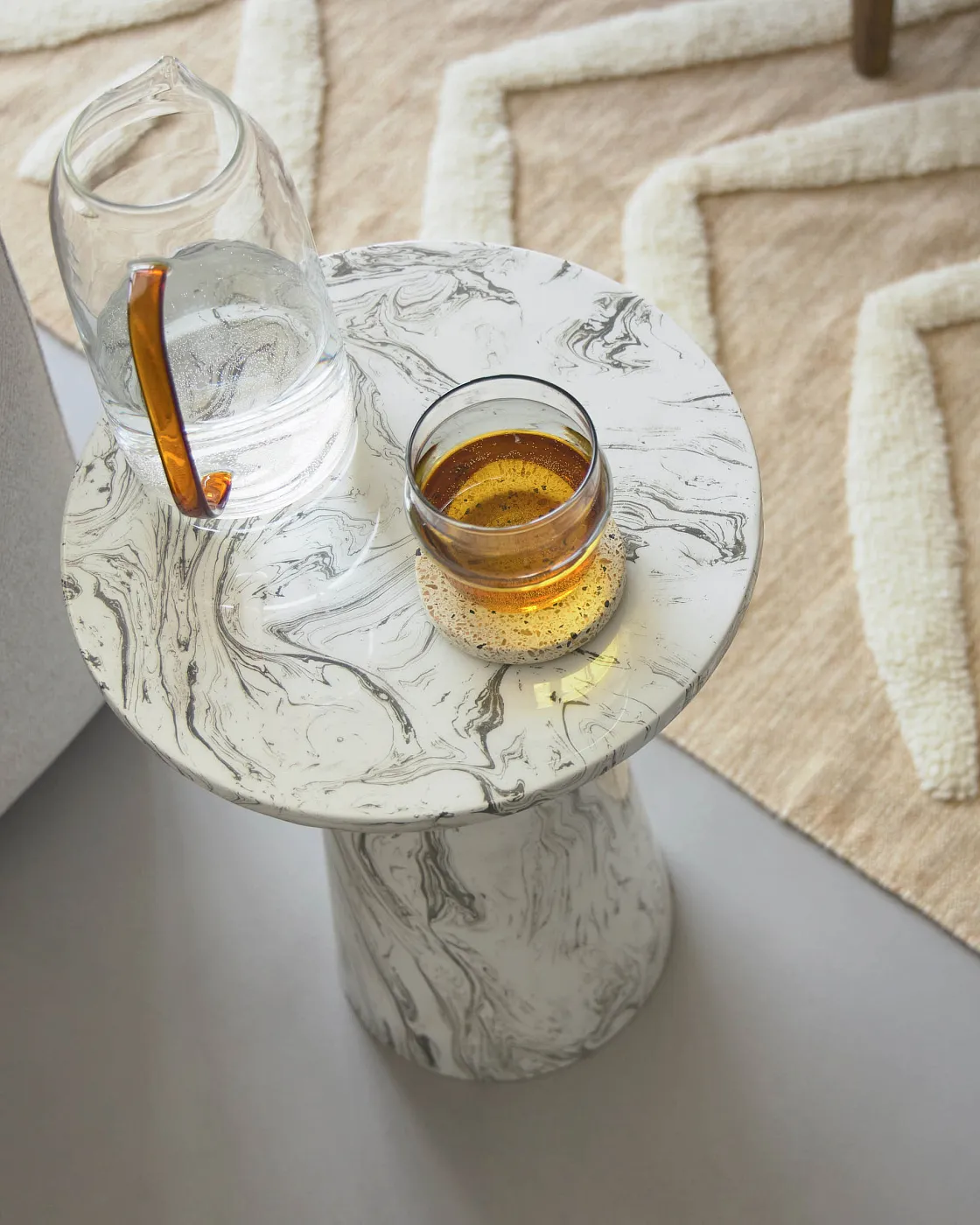 Cтолик приставной Kesbury от фабрики La Forma – мастерское перевоплощение железа в мрамор. Приставной столик Kesbury – уникален по своей технологии изготовления. Ведь сделан он не из мрамора, как это может показаться на первый взгляд, а из стали. Секрет – в особой технике покрытия эмалью. Что в итоге? Дизайнерский предмет интерьера с уникальным рисунком и весом в разы меньше, чем каменный аналог. Столик полностью металлический. Сверху нанесена эмаль трех цветов – черная, белая, серая. Проникая друг в друга, краска образует уникальный орнамент, напоминающий мрамор. Это покрытие практичное в эксплуатации, не портится от влаги, загрязнений. Максимально допустимая нагрузка на столик не должна превышать 5 кг. Размеры: ширина основания – 20 см, диаметр столешницы – 33 см, высота – 46 см. Вес – 2,3 кг. Сборка не требуется. Изделие не подходит для эксплуатации на улице.