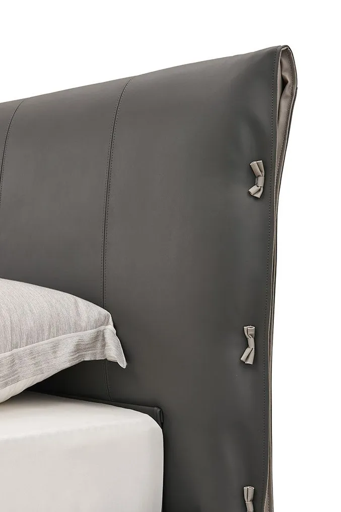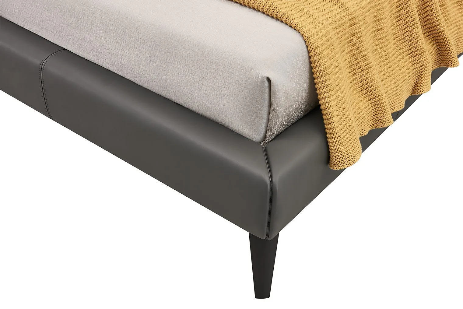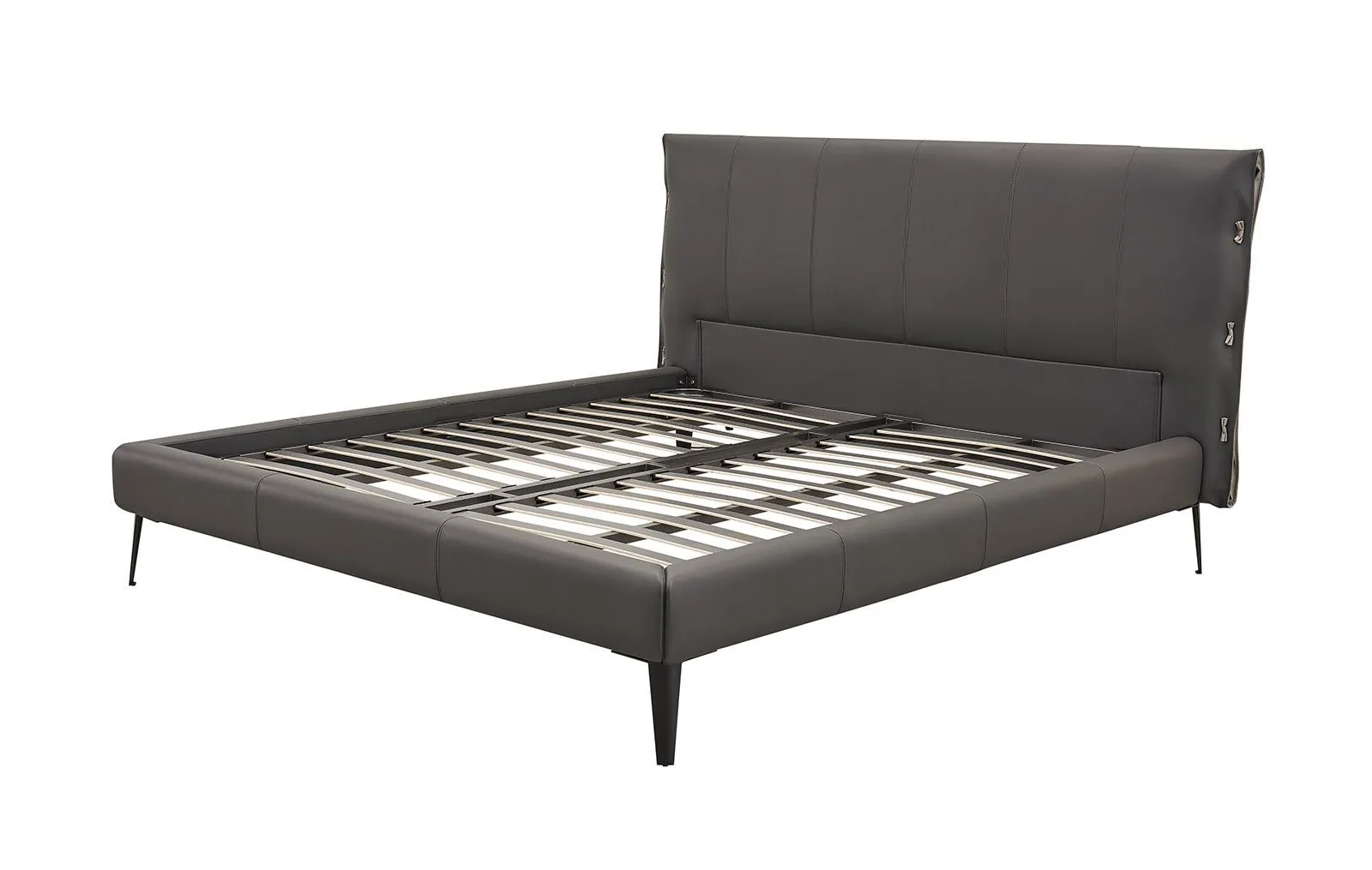 Кровать изготовлена из высококачественной эко-кожи цвета "Графит", которая выглядит элегантно и современно. Материал является прочным и долговечным, при этом очень прост в уходе.