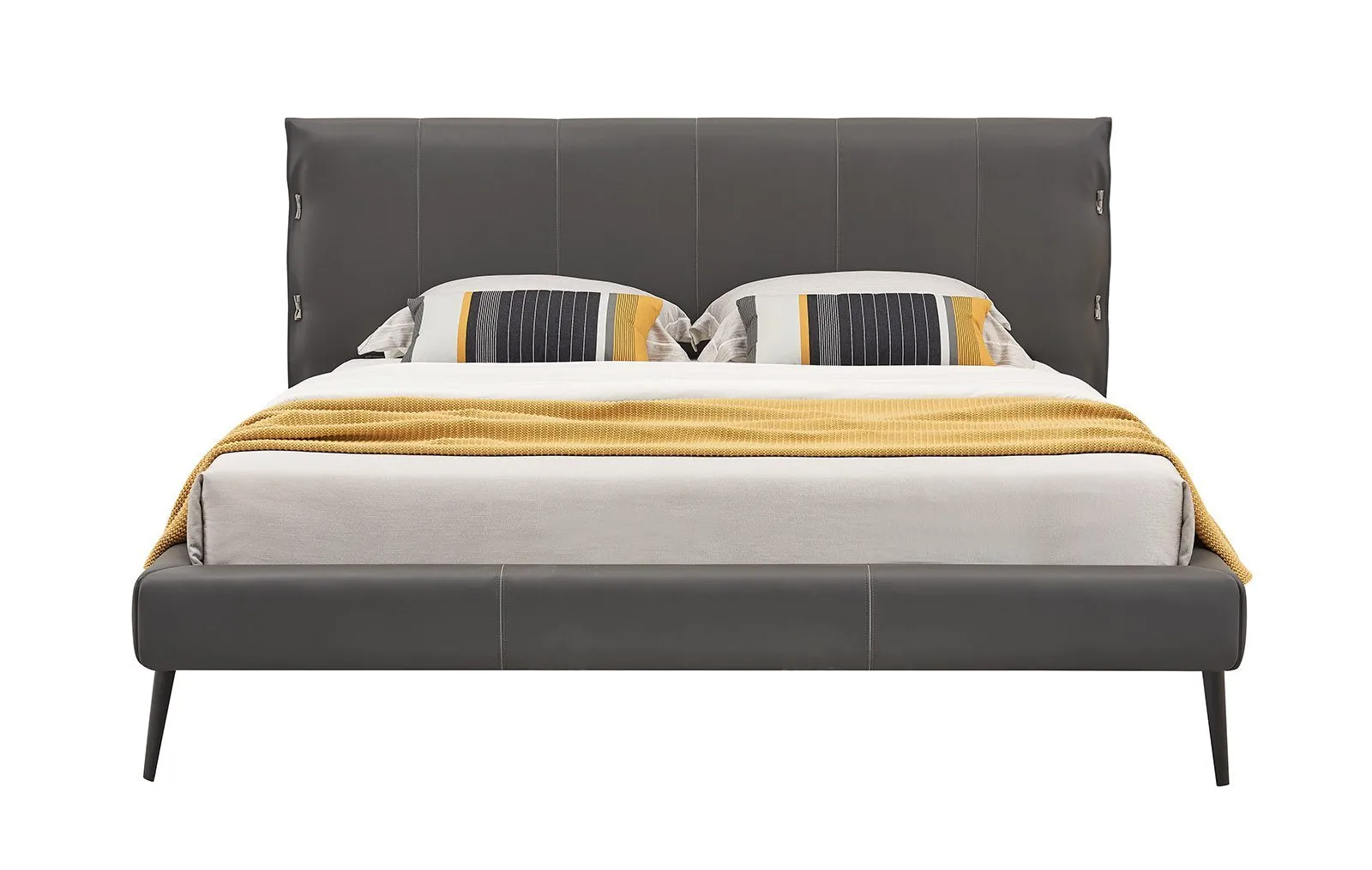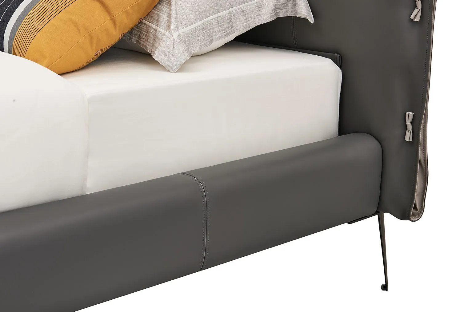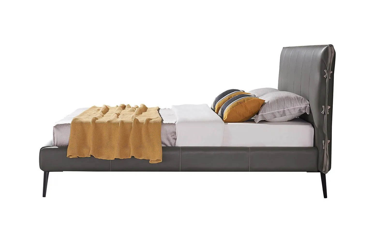 Кровать изготовлена из высококачественной эко-кожи цвета "Графит", которая выглядит элегантно и современно. Материал является прочным и долговечным, при этом очень прост в уходе.
