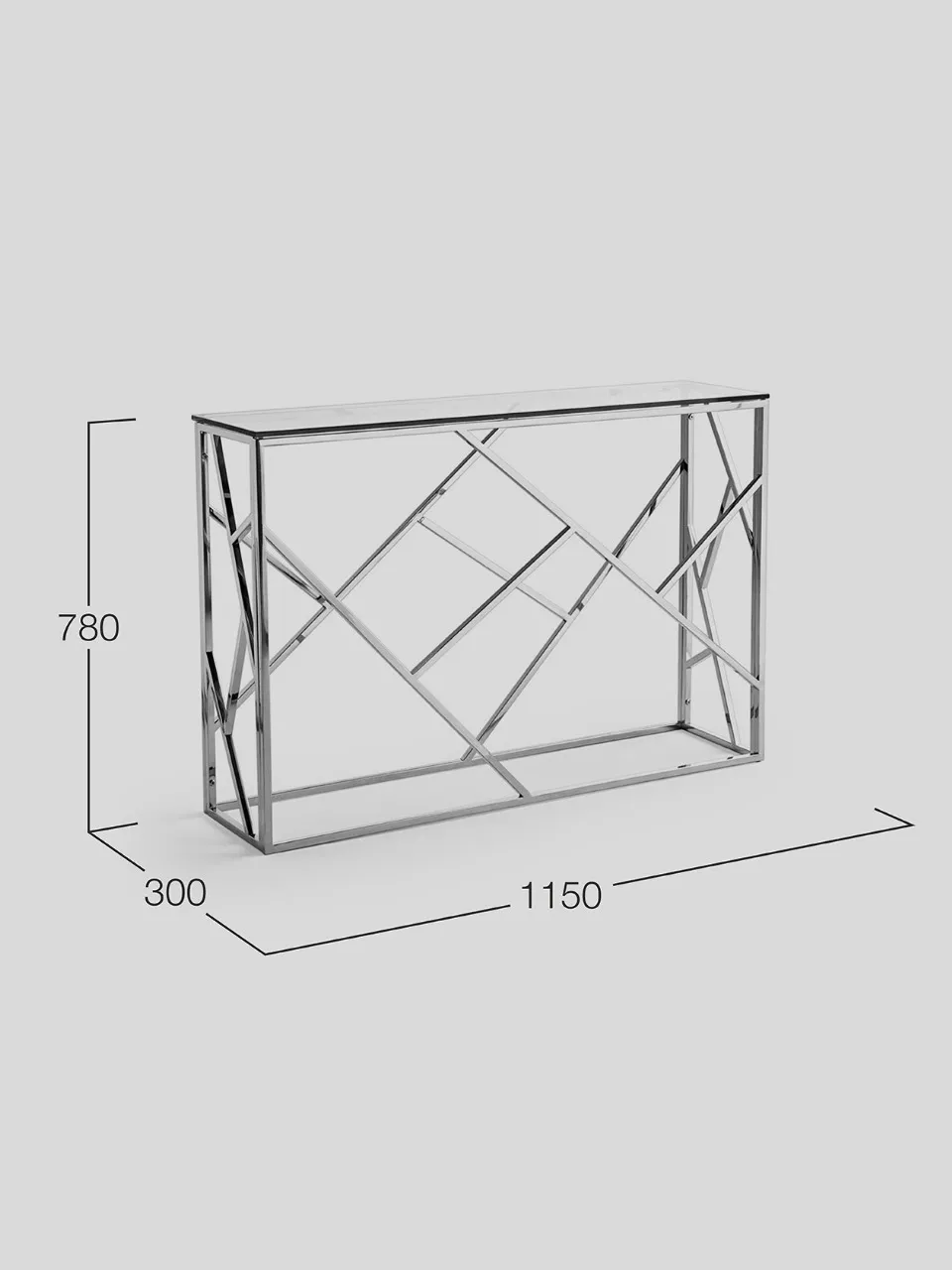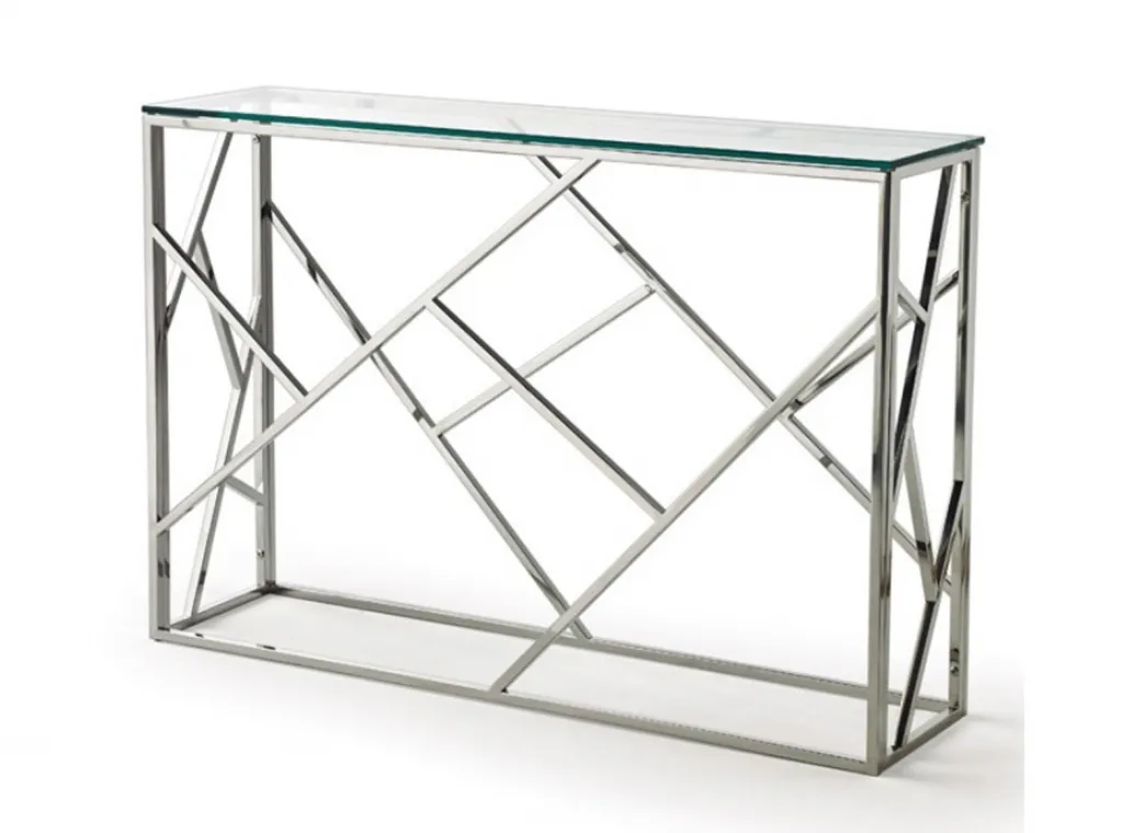 Дизайнерский хромированный каркас из лёгкого алюминия придаёт консоли устойчивость, а столешница из закалённого стекла толщиной 10мм. - дополнительную прочность.