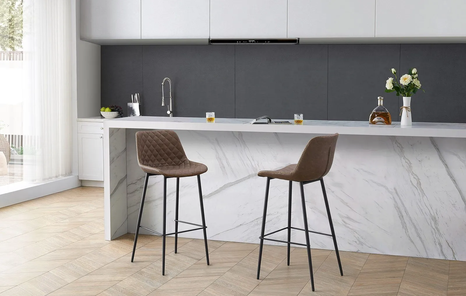 Барный стул Yang на металлическом каркасе – это прочное и практичное решение, обеспечивающее долговечность мебели и сохранение ее привлекательного вида. Идеально подходит для тех, кто ценит долговечность и современный стиль в интерьере. Этот стильный барный стул станет изысканным дополнением к роскошному современному интерьеру.