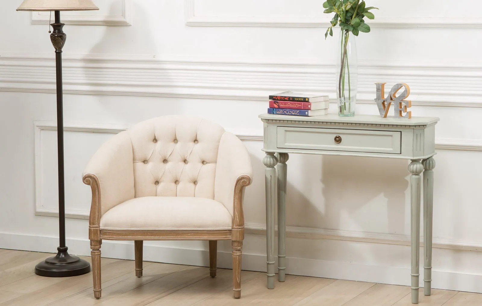 Консольный стол, выполненный из массива гевеи в сером цвете.