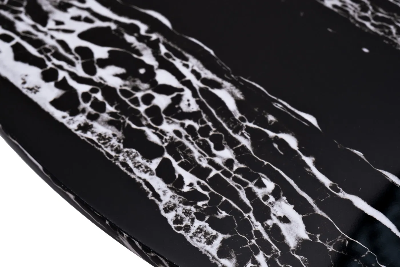 Круглый журнальный стол – всегда уместное дополнение интерьера гостиной. Без этой мебели сложно представить себе уютную обстановку. Данный журнальный стол в черном цвете легко комбинируется с диваном и креслами, может использоваться в лаундж-зоне и рабочем кабинете. На черной матовой столешнице эффектно смотрятся различные вазы, подсвечники и прочий домашний декор. Легкости и изящества мебели придают опоры из стали с благородным блеском. Стол прекрасно вписывается как в минималистичные интерьеры, так и в роскошную обстановку ар-деко, неоклассика, фьюжн. Толщина столешницы - 20мм.