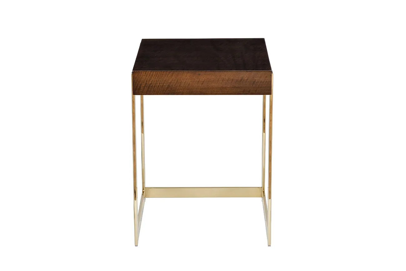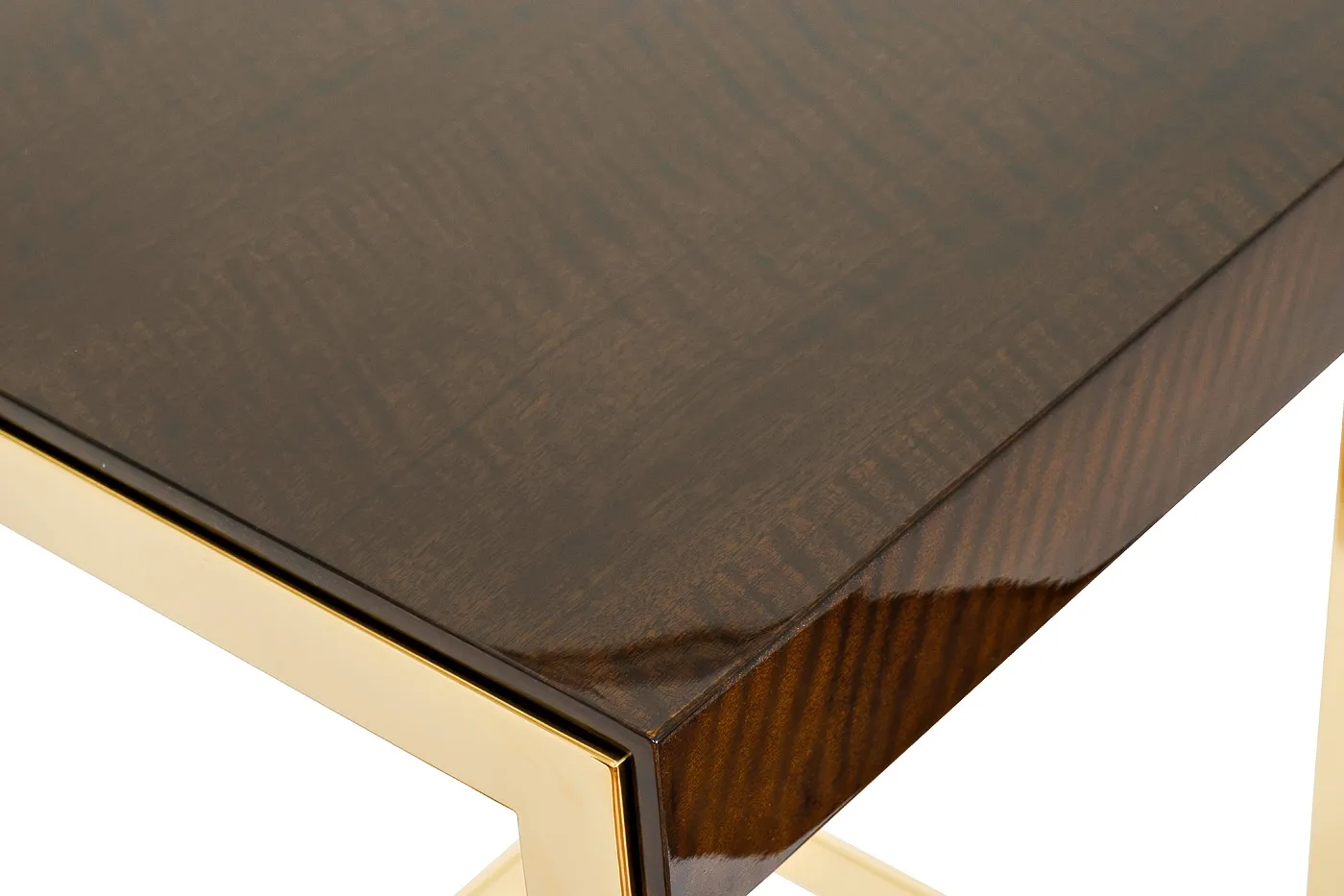 Столик журнальный квадратный тиковый шпон/лак/золото