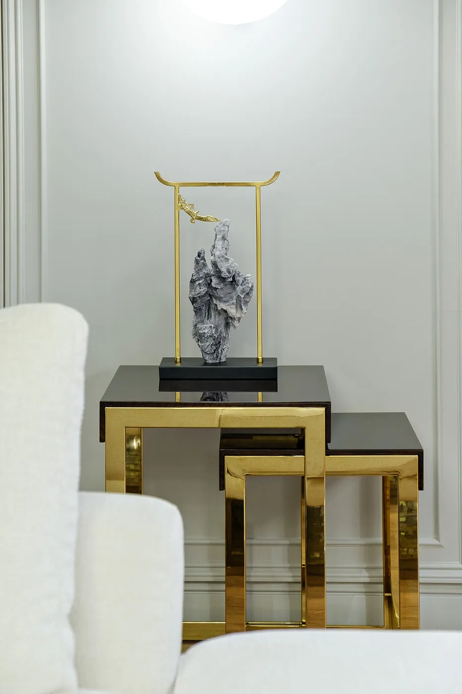 коллекция Столик журнальный квадратный тиковый шпон/лак/золото