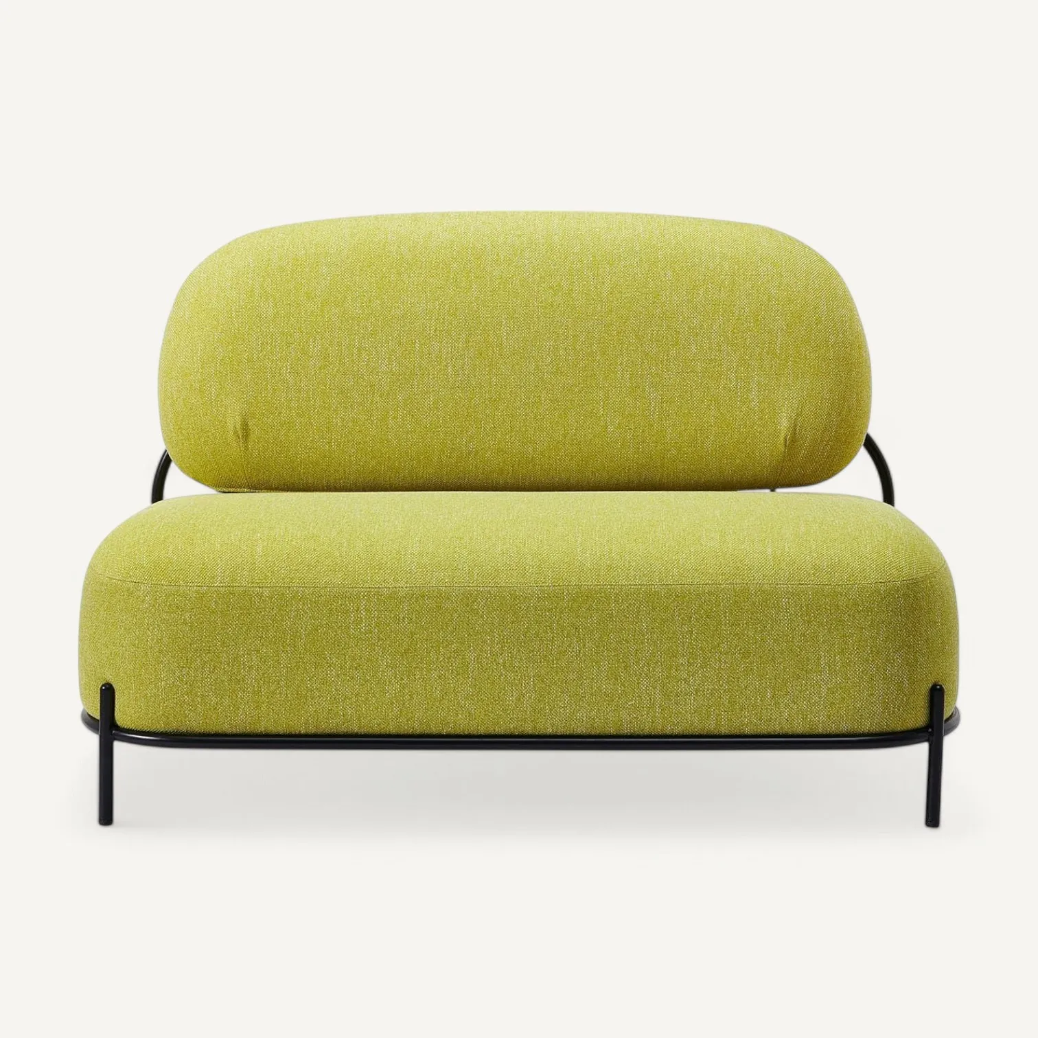 Прочный каркас изготовлен из надежной древесины, а подушки выполнены из мягкой и приятной на ощупь ткани. Желтый цвет дивана добавит яркости и стиля вашему интерьеру.