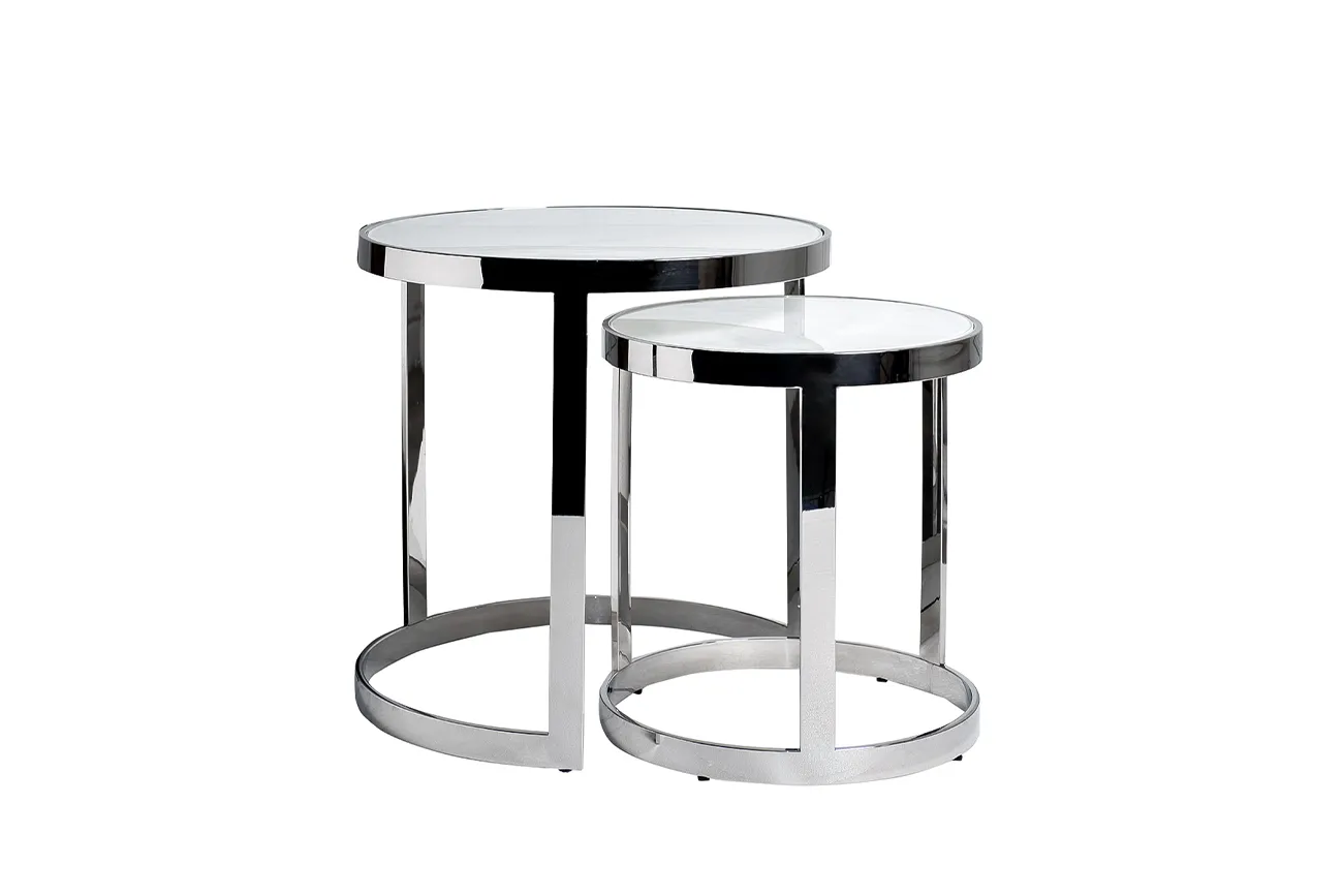Одним из последних трендов в дизайне интерьера является набор журнальных столиков, изготовленных из нержавеющей стали и стекла, они имеют особенный и своеобразный дизайн. Являются предметом роскоши и комфорта. В набор входит два журнальных столика, которые отличаются между собой по форме и размеру, имеют простую конструкцию. Эти изысканные изделия станут украшением гостиной, столовой, прихожей, комнаты отдыха в офисах. Несмотря на то что столешница имеет круглую форму и сделана из стекла, обладает повышенной прочностью и долговечностью. Комплект журнальных столиков идеально впишется в помещения различных стилистических направлений. Будут всегда притягивать к себе внимание и станут изюминкой интерьера. Толщина столешниц - 8мм.