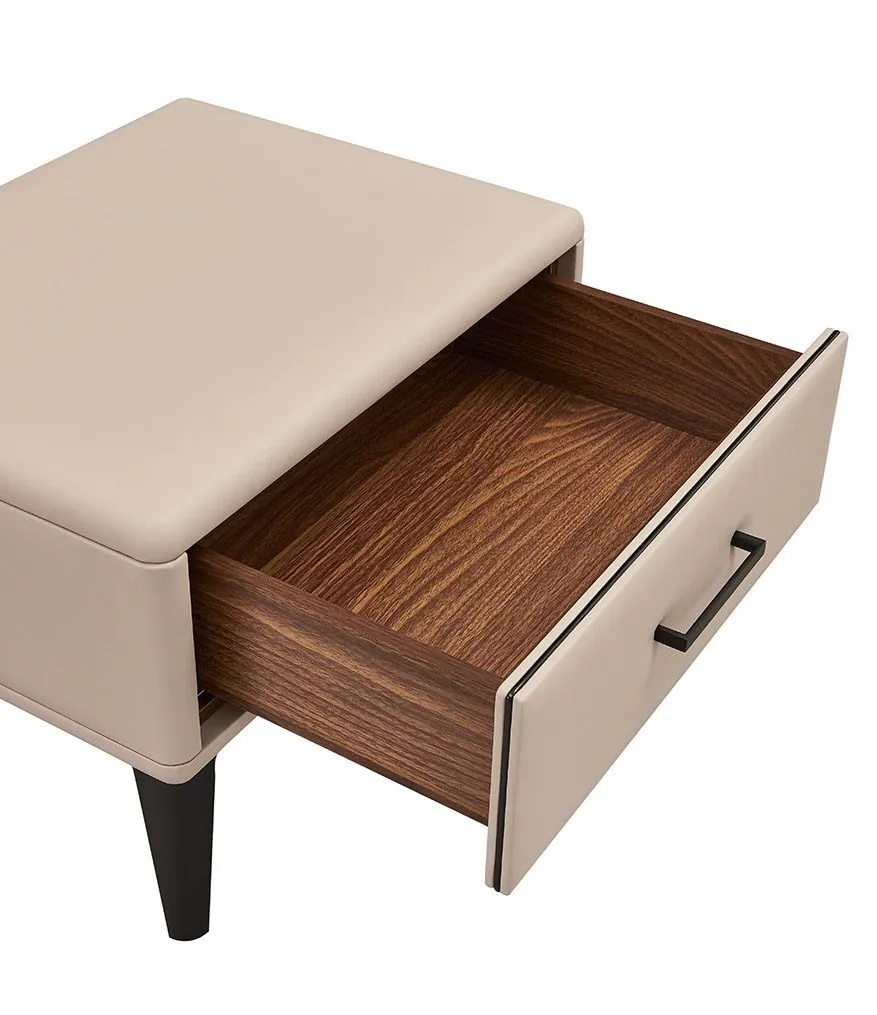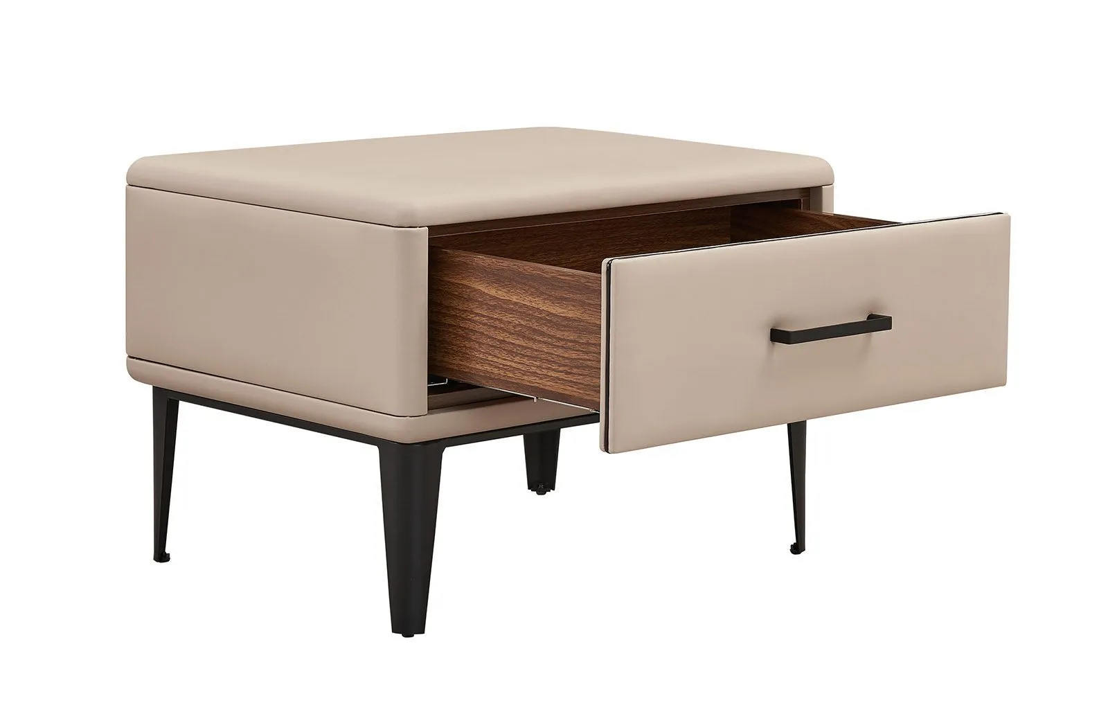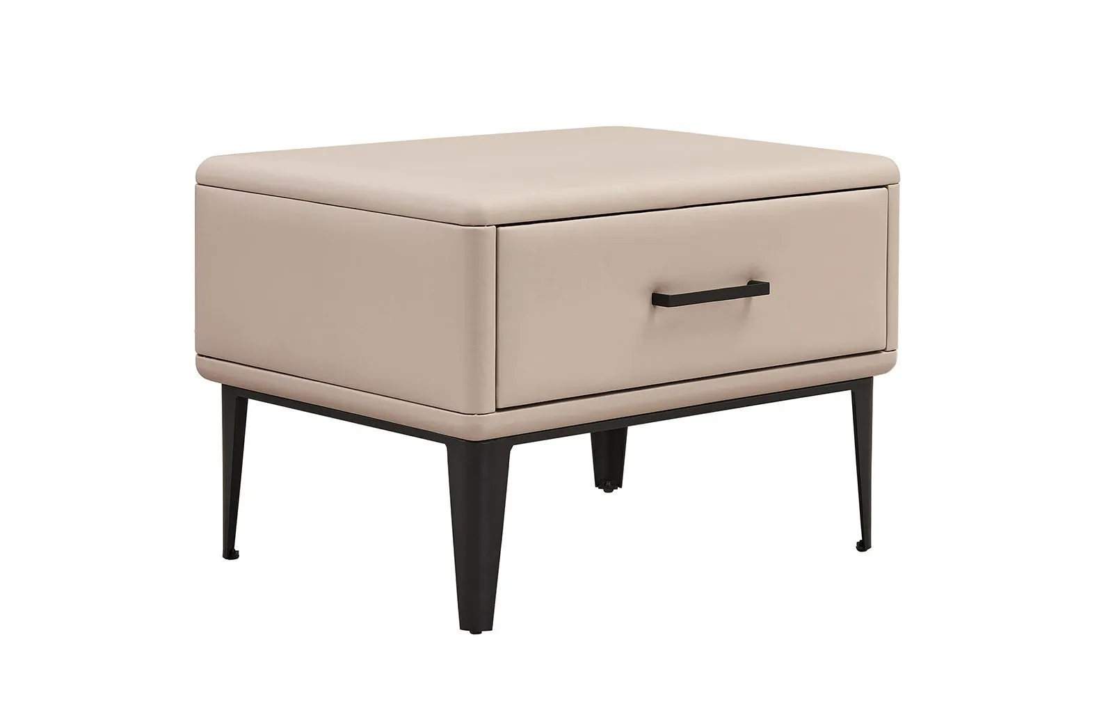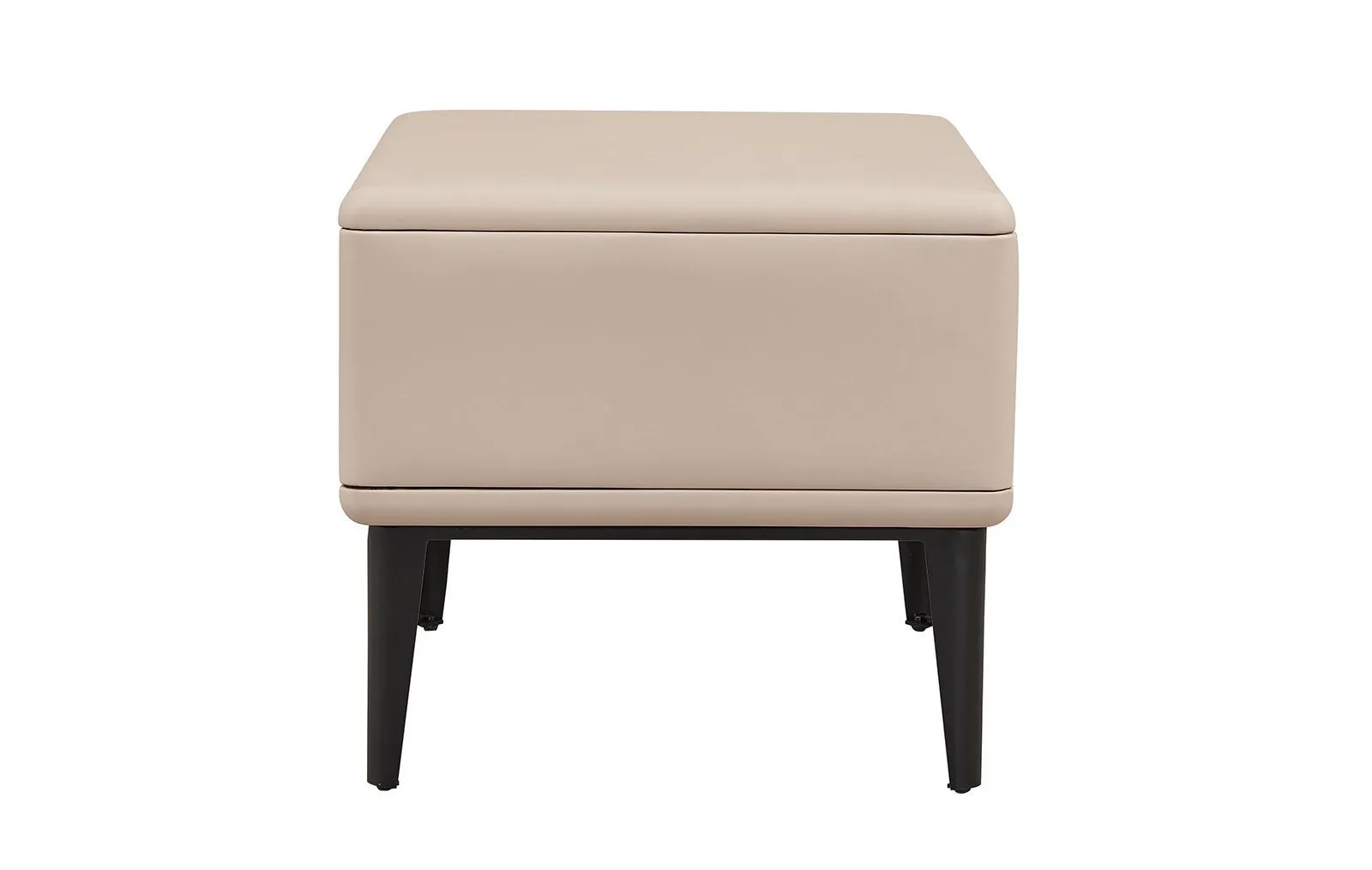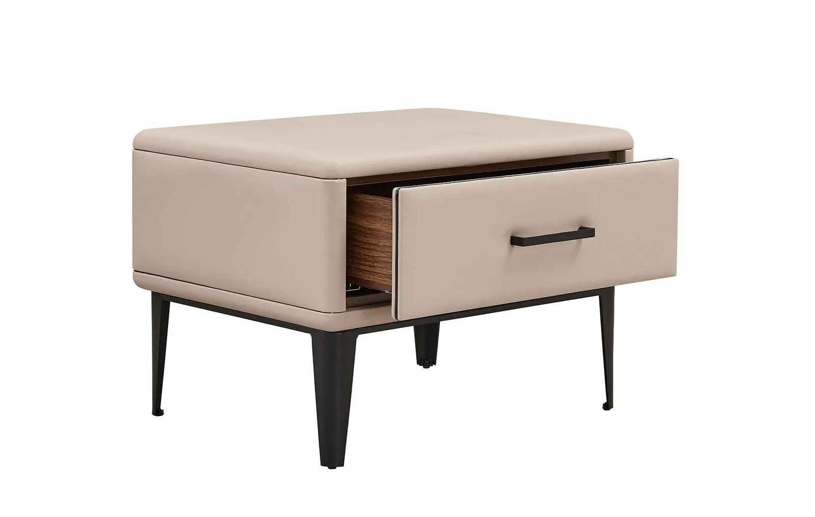 Ножки тумбы выполнены из металла, придавая ей современный и стойкий к внешним воздействиям вид. Обивка, выполненная из высококачественной экокожи, добавляет этой тумбе изысканный и роскошный элемент.
