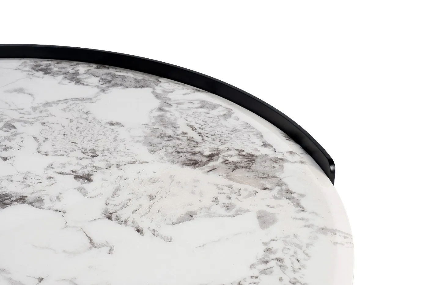 Круглый журнальный стол из коллекции CADIZ с оригинальными ножками из металла золотого и черного цвета внесет нотку аристократизма в интерьер гостиной. Столешница из МДФ с имитацией мрамора выглядит стильно и дорого, добавляя обстановке элегантности и шика. Журнальный стол - стильный и эргономичный, эффектно смотрится с мягкой велюровой мебелью и украшает собой современное пространство. Он полностью отвечает требованиям стилистики ар-деко.