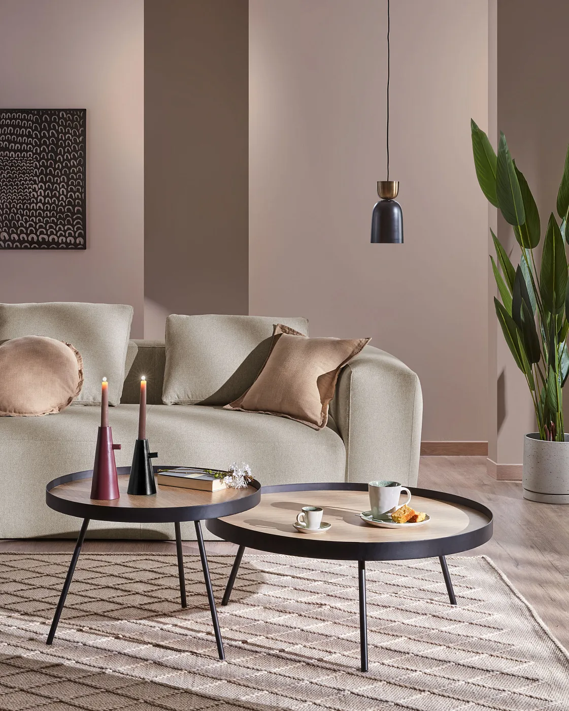 Журнальный столик Nenet от фабрики La Forma – идеальное сочетание металла и древесины в стильной концепции. Журнальный столик Nenet – это изделие с дизайном, который адаптируется к любому стилю интерьера и помещению. Кроме того, столешница в виде подноса не позволит жидкости пролиться на пол, что особенно актуально, когда у вас есть маленькие дети. И конечно, круглая форма, для которой нет преград в виде углов или сложных изгибов стен. Столик круглой формы. Столешница выполнена из экологичного МДФ со специальным покрытием для защиты от механических повреждений и простого ухода. Борт имеет высоту 5 см. Он выполнен из металла и покрыт черной порошковой краской. Из аналогичного материала изготовлены ножки. Они трубчатые, имеют ширину 1,5 см. Для защиты напольного покрытия от повреждений, на них есть пластиковые наконечники. Максимальная нагрузка на столик – 20 кг. В зависимости от выбранной модели, габариты будут отличаться. Размеры: диаметр – 60 или 84 см, высота – 44 или 35 см. Потребуется небольшая сборка. Столики будут смотреться в паре, хорошо дополняя друг друга и интерьер.