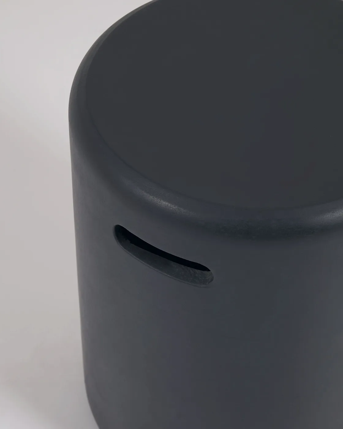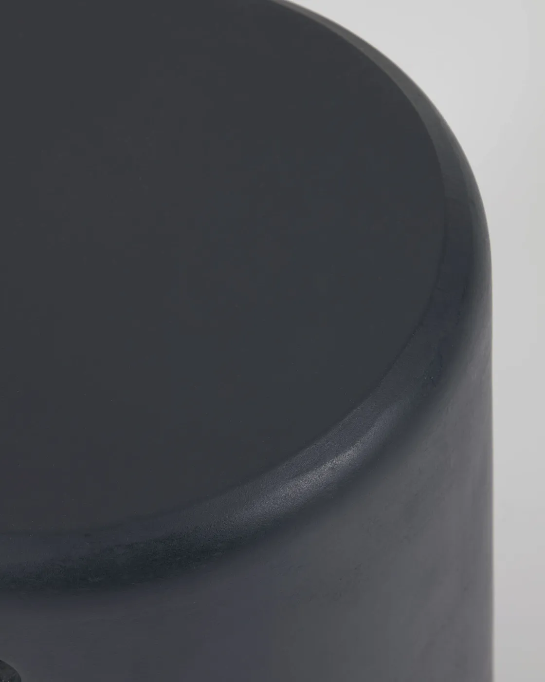Столик Taimi от фабрики La Forma (ex Julia Grup) – самая простая форма для любых обстановок и событий. Столик Taimi – простой и незаменимый предмет интерьера, который сделает вашу уличную обстановку более полной. Надежный и долговечный, он может исполнить роль небольшого кофейного столика, подставки или дополнительного стула. Черный матовый или натуральный серый цвет – эффектный акцент среди зелени или деревьев. Это трендовый минимализм, так что будьте в теме! Столик Taimi полностью сделан из бетона. Он имеет цилиндрическую форму, литой и полый внутри. По бокам сделано две ручки в виде отверстий для удобного переноса. В коллекции представлено две модели, которые отличаются друг от друга только цветом – с черным матовым покрытием и в натуральной серой отделке. Независимо от выбранного изделия, вы получите долговечный, стойкий к негативным атмосферным воздействиям предмет мебели, который, к тому же, удобно мыть от загрязнений. Общая максимальная нагрузка – 60 кг. Размеры: ширина – 35 см, высота – 45 см, глубина – 35 см. Вес изделия – 15 кг. Сборка не требуется. В коллекции Taimi также представлены круглые столики в двух размерах и цветах, журнальный столик.