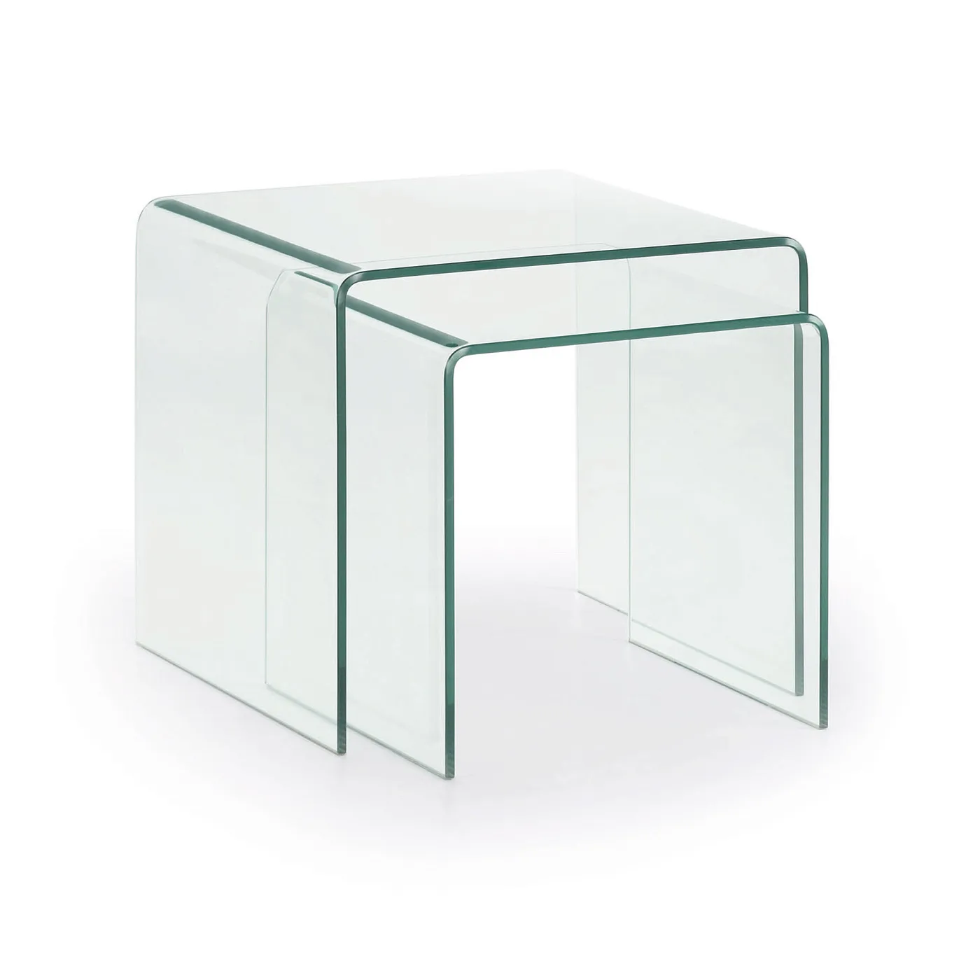 Набор столиков Burano от фабрики La Forma – сверхпрочное стекло и удобное соотношение габаритов. Столики Burano – это абсолютно беспроигрышный вариант для любого современного интерьера. Простейшая форма и полная прозрачность – вот в чем секрет универсальности этого сета. Здесь толщина стекла достигает 1 см, что значительно увеличивает стойкость к механическим повреждениям и весовым нагрузкам. А возможность задвигать малый столик под большой позволит изменять форму и конфигурацию общей площади двух столешниц. Столики полностью выполнены из закаленного стекла. Структура монолитная, обладающая повышенной прочностью за счет толщины в 1 см. Суммарная весовая нагрузка не должна превышать 25 кг. Для защиты напольного покрытия от повреждений, внизу есть специальные пластичные накладки. Размеры: ширина – 50 и 42 см, глубина – 50 и 50 см, высота – 50 и 40 см. Суммарный вес – 28,4 кг. Сборка не требуется. В коллекции Burano также представлены журнальный и приставной столики в разных дизайнах, консоль, письменный стол.