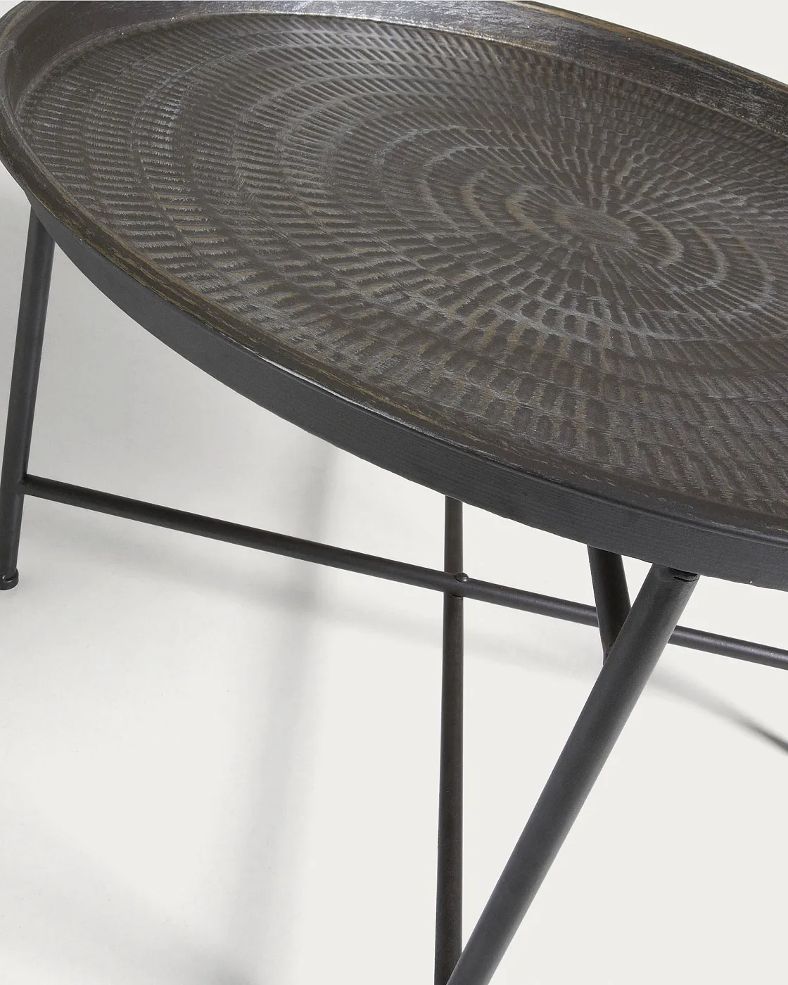 Журнальный столик Adaline от фабрики La Forma (ex Julia Grup) — прочный и необычный предмет интерьера для современной квартиры. Столик Adaline мгновенно очаровывает своим внешним видом. Полностью выполненный из металла, с необычной столешницей в виде огромного блюда — такое изделие однозначно придется по вкусу всем ценителям долговечных и не выходящих из моды предметов интерьера. Столик Adaline — это удачное сочетание европейского модерна и дизайнерских решений, позаимствованных из прошлого столетия. Главный акцент сделан на столешницу, олицетворяющую стиль кантри. Совершенно нет ощущения того, что она изготовлена на современном оборудовании, а не кустарным способом. Выштампованная «брусчатка» и невысокие бортики смотрятся не только оригинально, но и несут в себе практический смысл: еда и напитки случайным образом не окажутся за границей поверхности. Благодаря полностью металлической конструкции, изделие можно эксплуатировать не только в помещении, но также на открытой террасе или веранде. Ножки соединяются крестообразными перекладинами. Так тяжесть столешницы равномерно распределяется, что гарантирует отличную устойчивость даже на неровной поверхности. Размеры — 65 см x 40 см x 65 см (ширина, высота, глубина). Вес изделия составляет 2,96 кг.