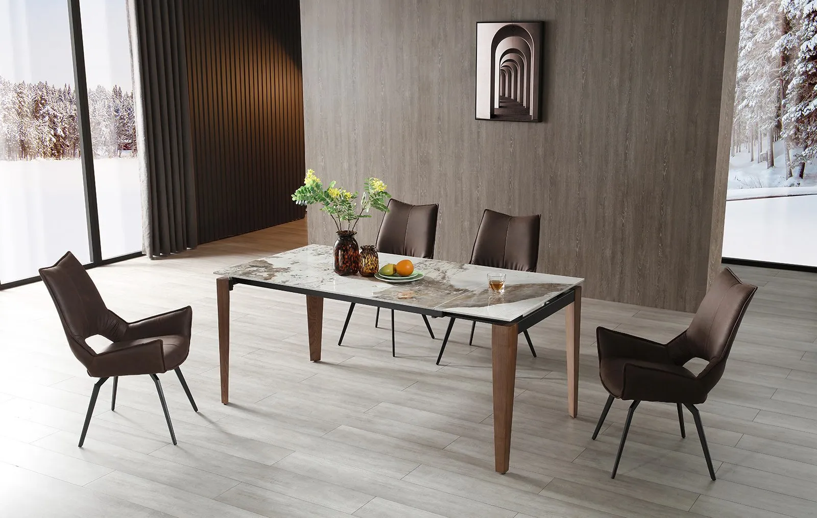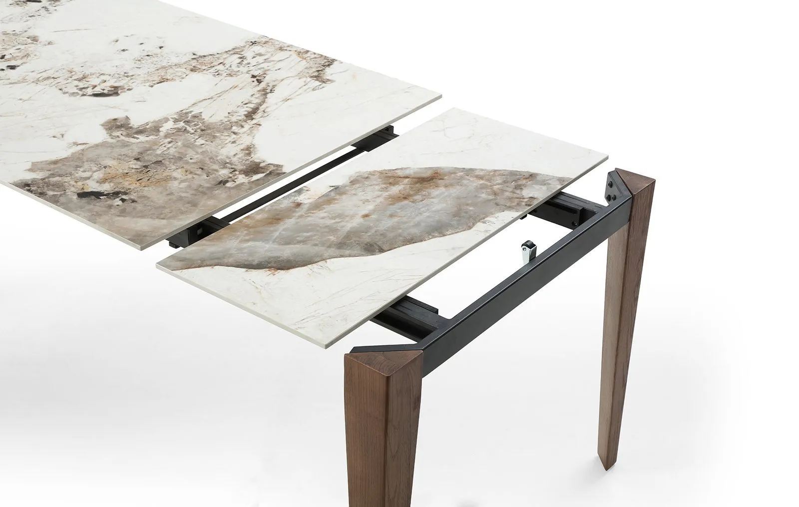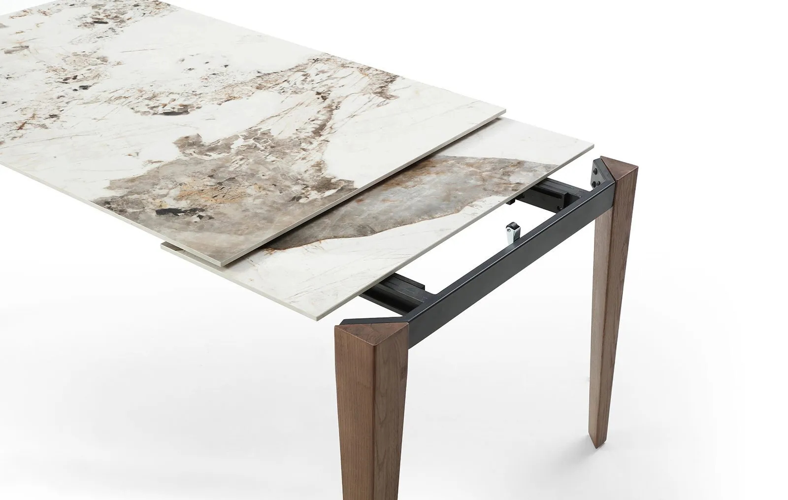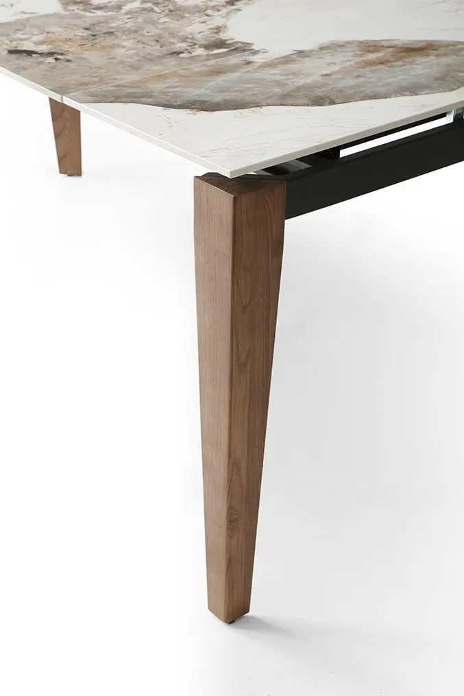Стол High Tea, с возможностью раздвижения, является продуктом высокого качества с 12-миллиметровой керамической столешницей и ножками из массива ясеня. Основание из дерева служит гарантией долговечности и прочности модели.