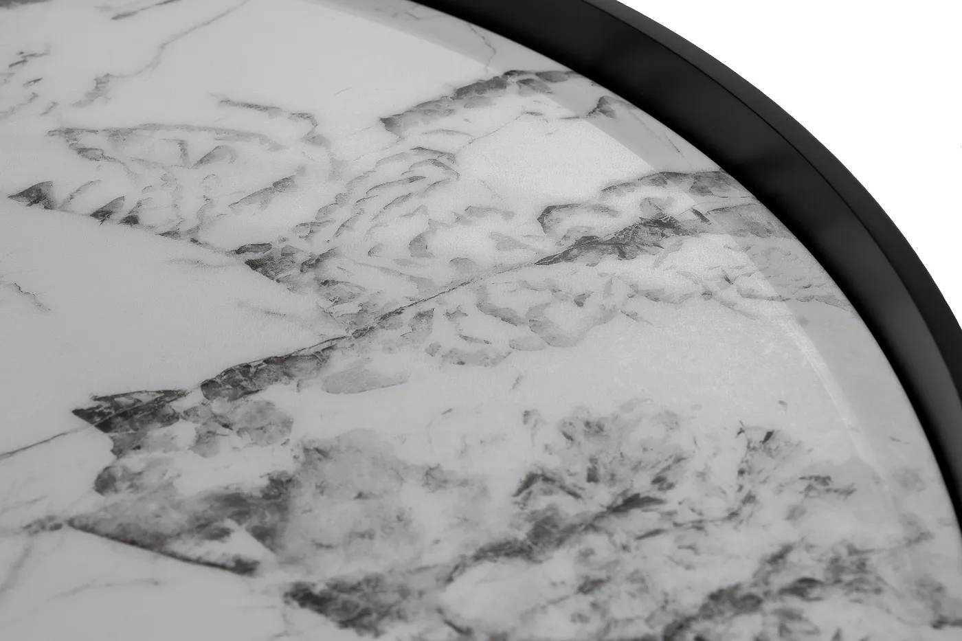 Журнальный круглый столик с со столешницей из МДФ с имитацией под мрамор из коллекции CADIZ может смело претендовать на звание произведения дизайнерского искусства. Необычная форма основания без излишеств выглядит особенно стильно и актуально. Это мебель со своим индивидуальным характером – мраморным рисунком на столешнице, интересными ножками из металла. Стильный журнальный столик органично вписывается в современный интерьер практически любой стилистики.