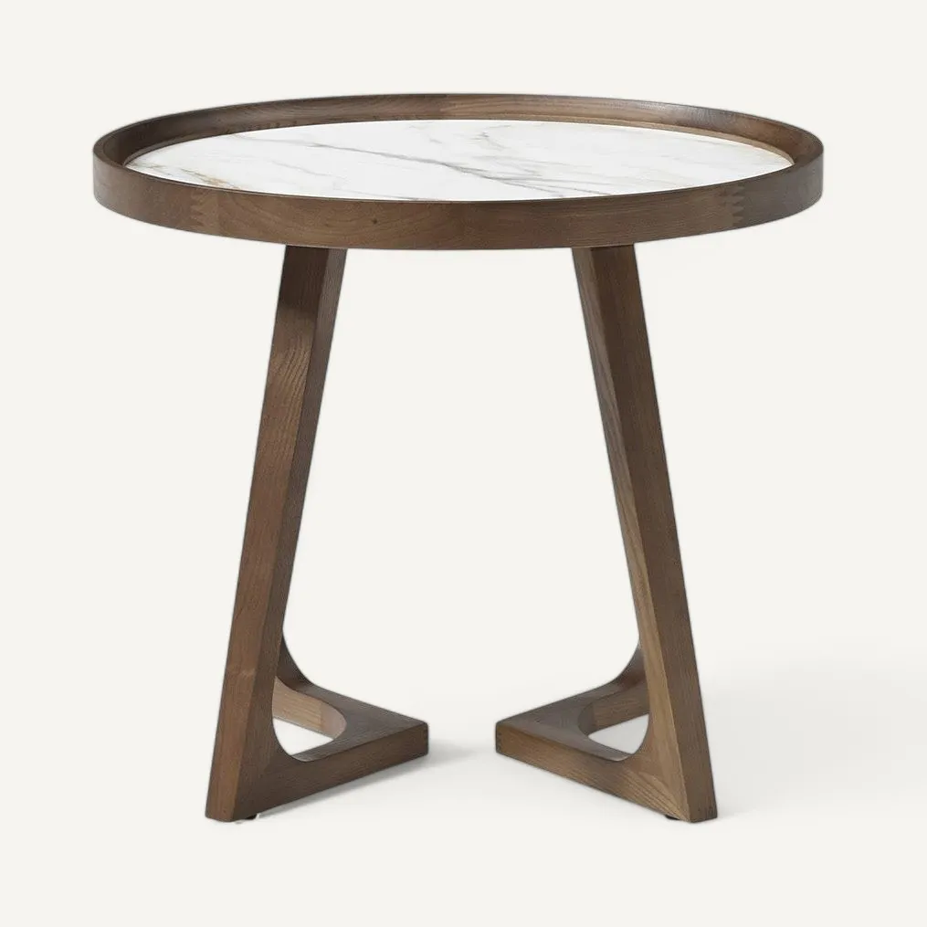 Уютные журнальные столики Raggio выполнены из натурального массива дерева в цвете орех. Текстура дерева приятно гармонирует с гладкостью керамической столешницы светлого цвета, а форма изящных ножек делает стол невероятно устойчивым.