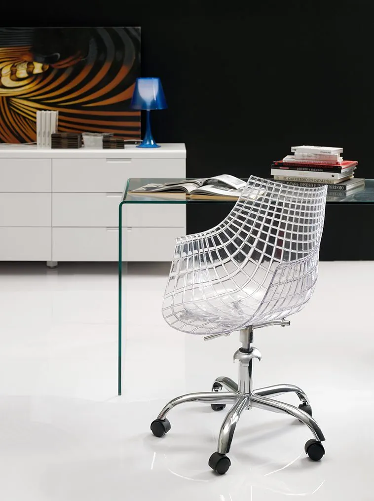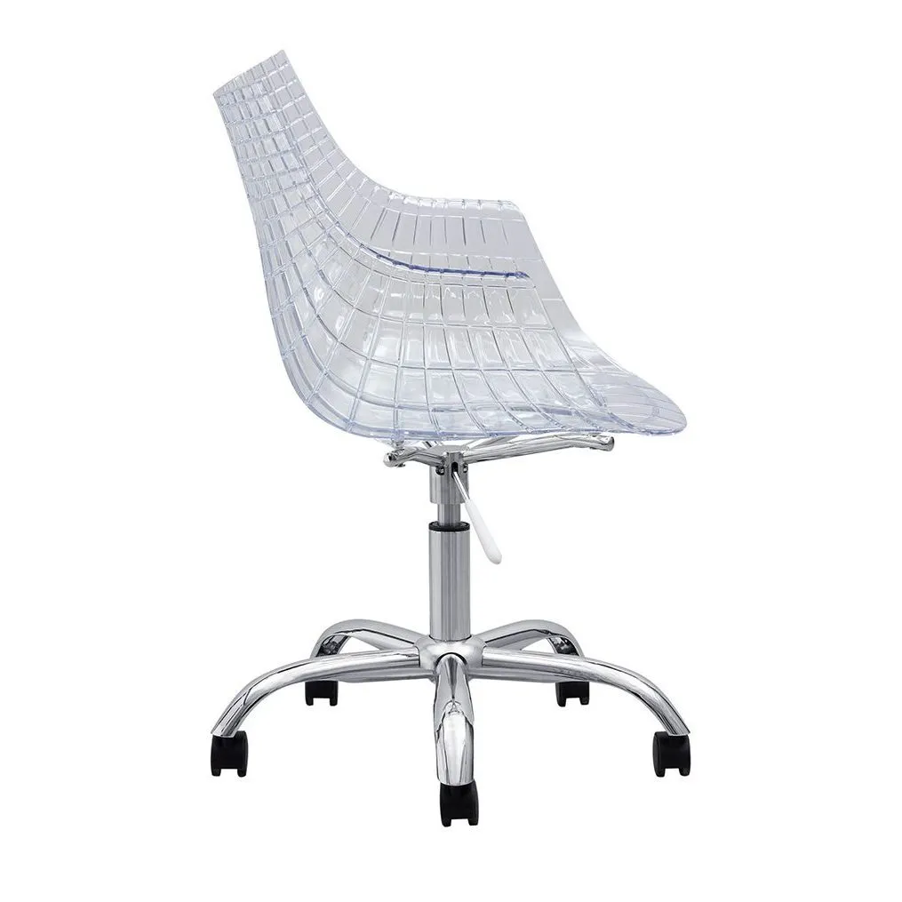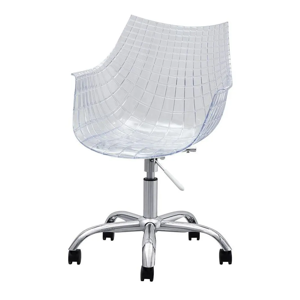 Простой механизм кресла обеспечивает надежность использования, а современный "космический" дизайн с четкими и выверенными линиями придает ему стильный вид. Хромированные элементы добавляют солидности, придавая ему современный шарм. Прозрачный цвет создает визуальный эффект легкости и изысканности.