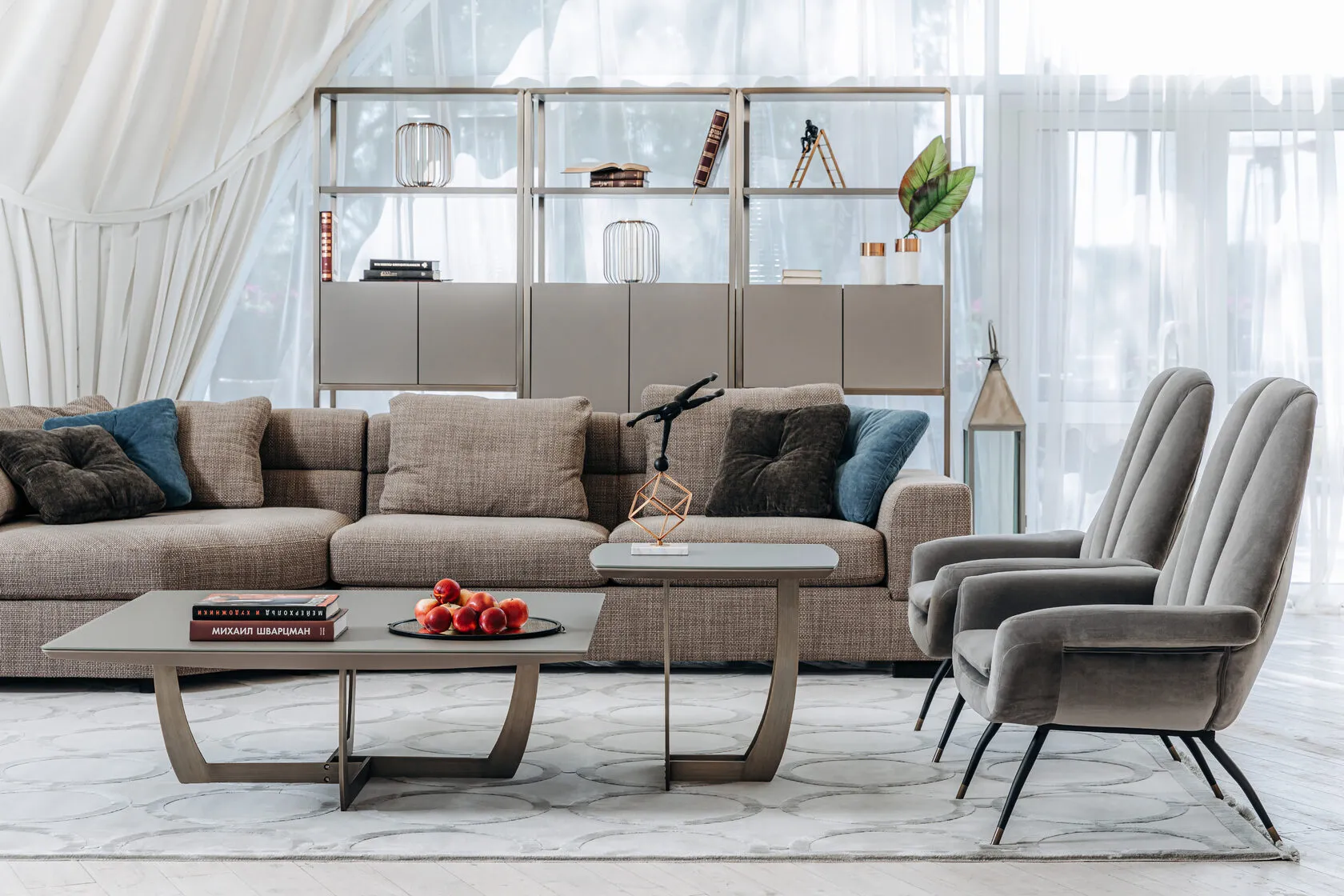 Cуперсовременный журнальный стол из мебельной коллекции Space от ведущего бельгийского дизайнера Тома Де Вульфа воплощает последние тенденции европейской интерьерной моды. Столешница из серого МДФ покрыта закаленным 5мм стеклом, обработанным по уникальной технологии, в результате которой поверхность приобретает гладкую и бархатистую фактуру, будто обкатанную морем. Оригинальная фигурная опора медного цвета заменяет традиционные ножки, обеспечивая устойчивость и безопасность конструкции. Все части стола выполнены из исключительно качественных материалов по самым современным технологиям.