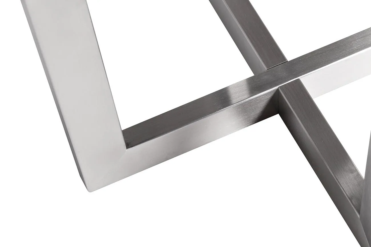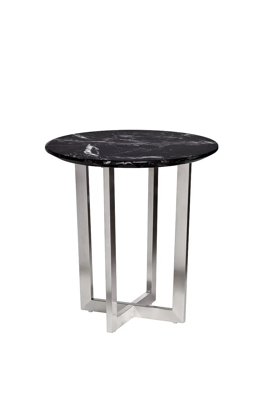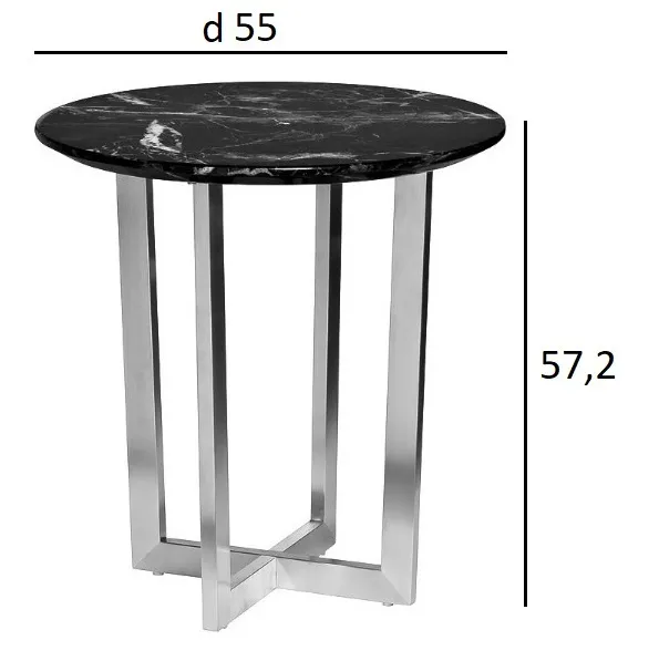 Изящный журнальный столик Nero со столешницей из МДФ с мраморным принтом черного цвета с белыми прожилками и основанием из нержавеющей стали цвета матовый хром будет уместен как в холле или прихожей, так и в гостиной комнате. На него можно класть прессу или корреспонденцию, ключи и перчатки, сумочки и шкатулки, либо поставить красивую вазу с цветами - столик всегда будет выглядеть элегантно и современно, дополняя и украшая интерьер. Толщина столешницы - 25мм.