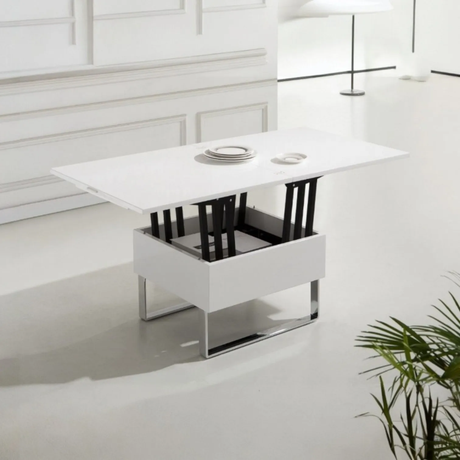 Изготовленный из МДФ, покрытого лаком, с хромированными металлическими деталями, он сочетает в себе стиль и практичность.