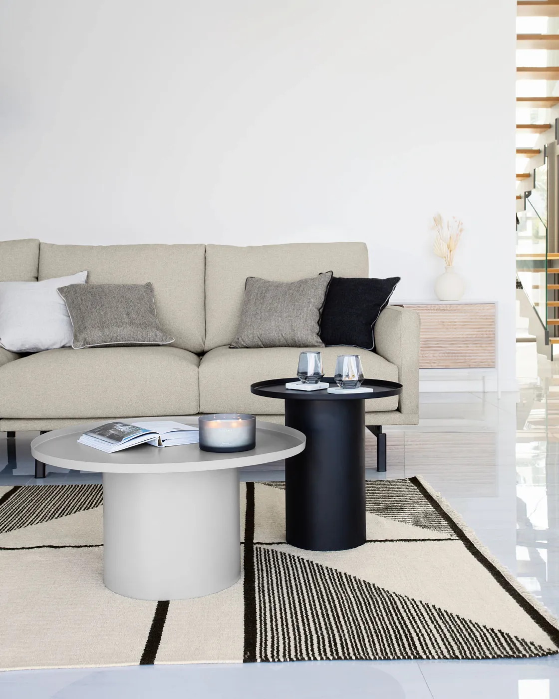 Круглый журнальный столик Fleksa от фабрики La Forma (ex Julia Grup) – стильный и свежий дизайн из крашеного металла. Журнальный столик Fleksa снова и снова будет вас убеждать, что куплен правильно. Без него будет не обойтись, пока пьете кофе в гостиной или расслабляетесь после трудового дня в мягком кресле с бокалом вина. Продуманная конструкция и несложный дизайн – прекрасный выбор в пользу современной мебели. Освежите ваш минималистичный стиль! Журнальный столик Fleksa полностью сделан из металла. Он окрашен в серый или черный матовый цвет по методу порошкового покрытия. Такая технология обеспечивает идеальную поверхность. Цвет изделия зависит от выбранной модели. Края столешницы загнуты вверх, благодаря чему случайно пролитая жидкость не стечет на пол. Высота бортиков – 2 см. Широкое основание обеспечит устойчивость на любом покрытии и равномерное распределение нагрузки. Благодаря прочности металла, стол не деформируется от нагрузок, а сама поверхность легко чистится от загрязнений. В коллекции Fleksa представлено два стола с разными размерами. Ширина – 72/45 см, высота – 36/46 см, глубина – 72/45 см. Стол предназначен только для эксплуатации в помещении.