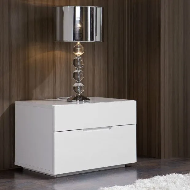 Прикроватная тумбочка отлично сочетается с трендами спальных комнат в стиле геометрических форм. Её компактные размеры и продуманные выдвижные ящики делают её не только стильным, но и удобным элементом интерьера. Глянцевая поверхность и ровные формы придают ей современный вид, не перегружая помещение декоративностью, что делает эту тумбочку практически универсальной для различных комнатных композиций.