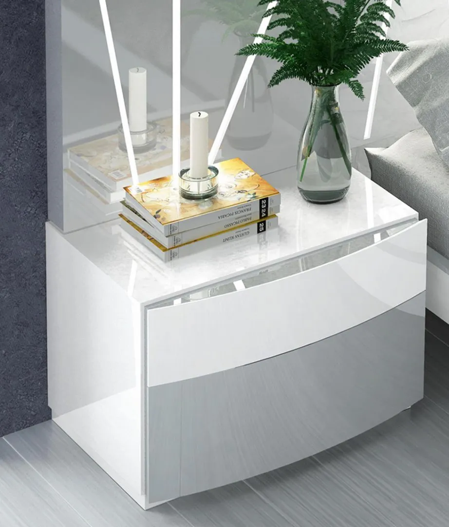 Прикроватная тумба ZULU выполнена из высококачественного МДФ, покрытого лаком типа "Высокий Глянец", создающим идеально гладкую и зеркальную поверхность.