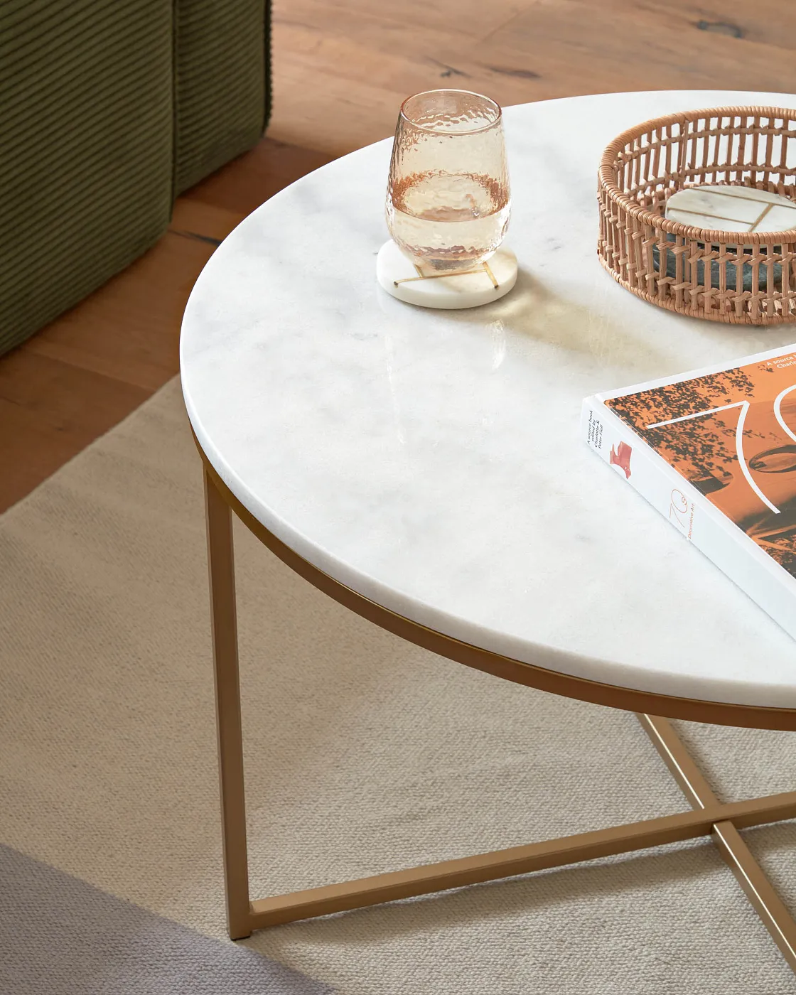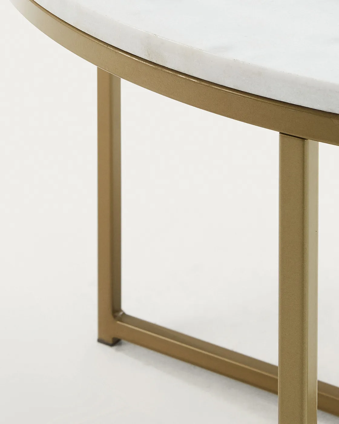 Журнальный столик Sheffield 80 см от фабрики La Forma – потрясающий мрамор и облегченная конструкция. Журнальный столик Sheffield моментально убеждает в своем превосходстве. Мраморная столешница – это не просто ценность модели, это еще и украшение для всего интерьера. Такой стол по праву сможет занять центральное место, стать самым роскошным предметом мебели в гостиной. Стол круглой формы. Столешница выполнена из натурального мрамора. Этот природный камень прочный и долговечный, обладает изумительным и уникальным природным орнаментом. Высота столешницы – 3,2 см. Опора состоит из двух рамочных стоек, которые приварены к обручу, удерживающему столешницу. Материал ее изготовления – сталь с латунным покрытием. На каждой ножке предусмотрены специальные накладки, которые защищают напольное покрытие от повреждений. Прочность металла обеспечивает стойкость изделия к нагрузкам (максимально 25 кг). Размеры: диаметр – 80 см, высота – 46 см. Вес – 25,5 кг. Потребуется самостоятельная сборка. Крепеж входит в комплектацию. В коллекции мебели La Forma есть приставной столик с аналогичным дизайном.