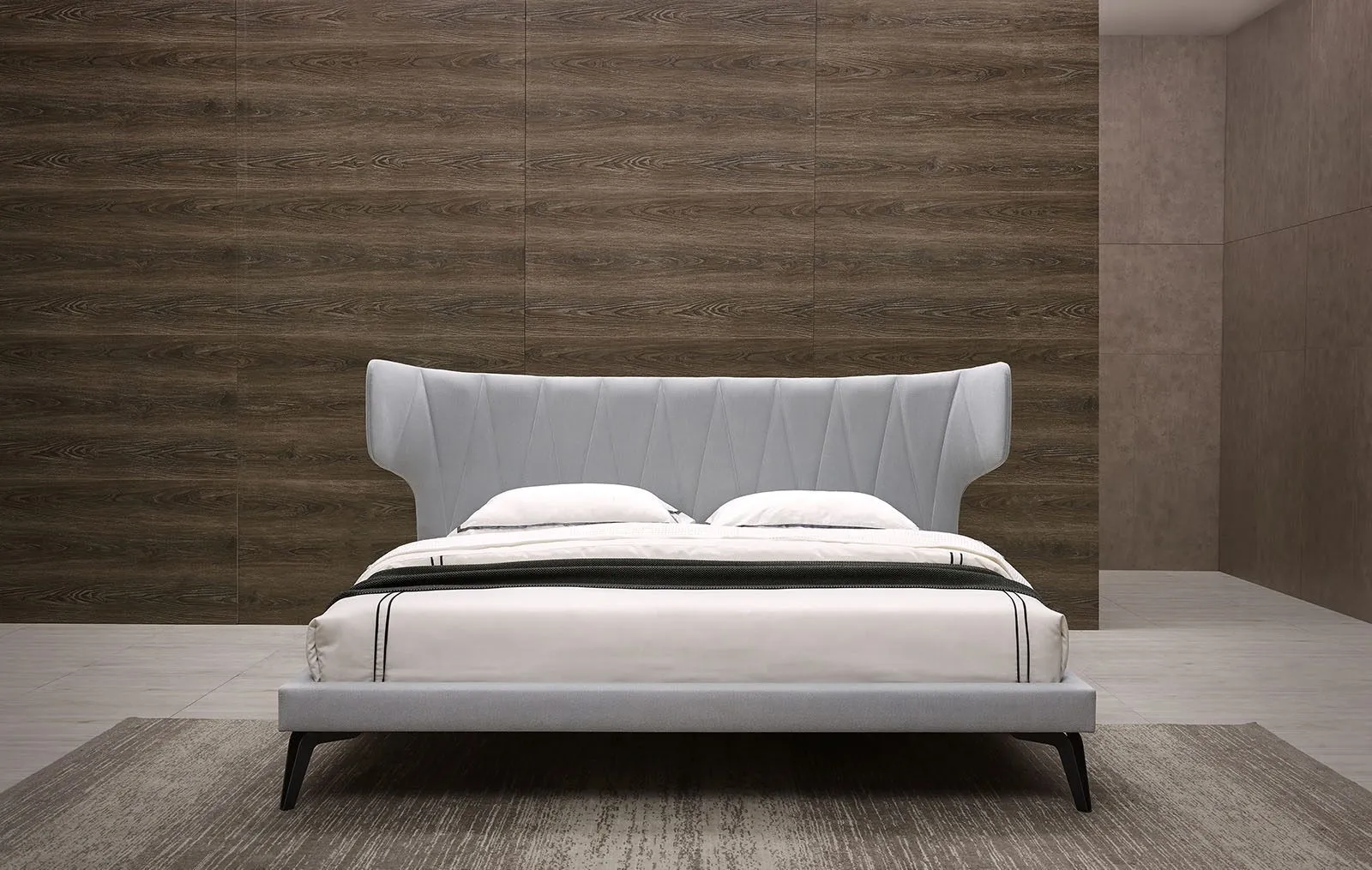 Двуспальная кровать серого цвета прекрасно впишется в интерьер спальни. Изготовлена из качественных материалов и имеет прочную конструкцию.