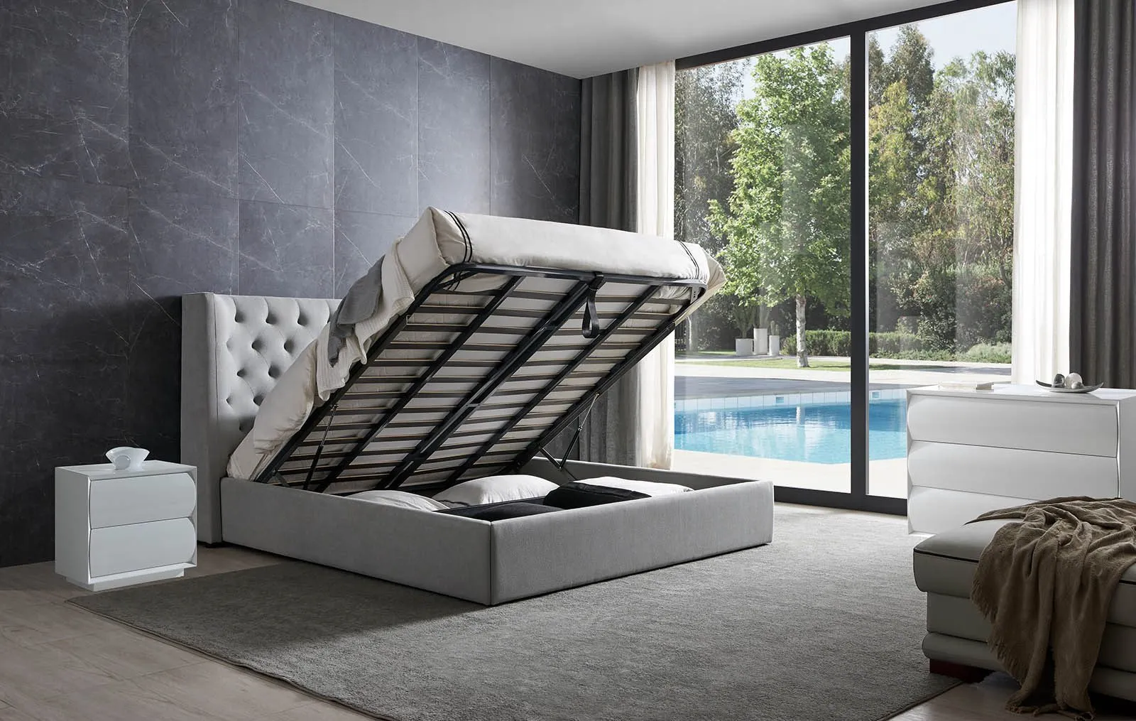 Данная модель оснащена ящиком для белья и подъемным механизмом на газлифтах