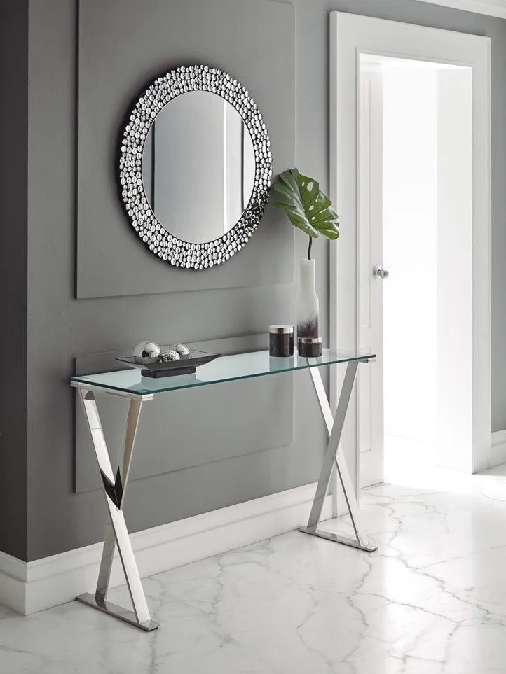 Калёное стекло, полученное контрастной термообработкой, обладает высокой прочностью, что делает консоль надежным элементом мебели.