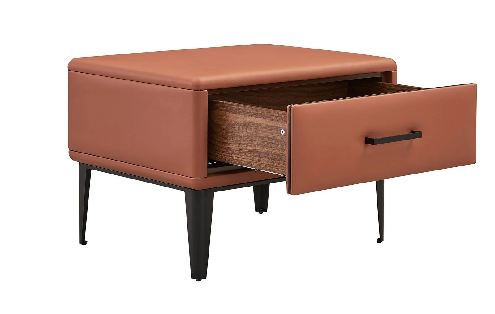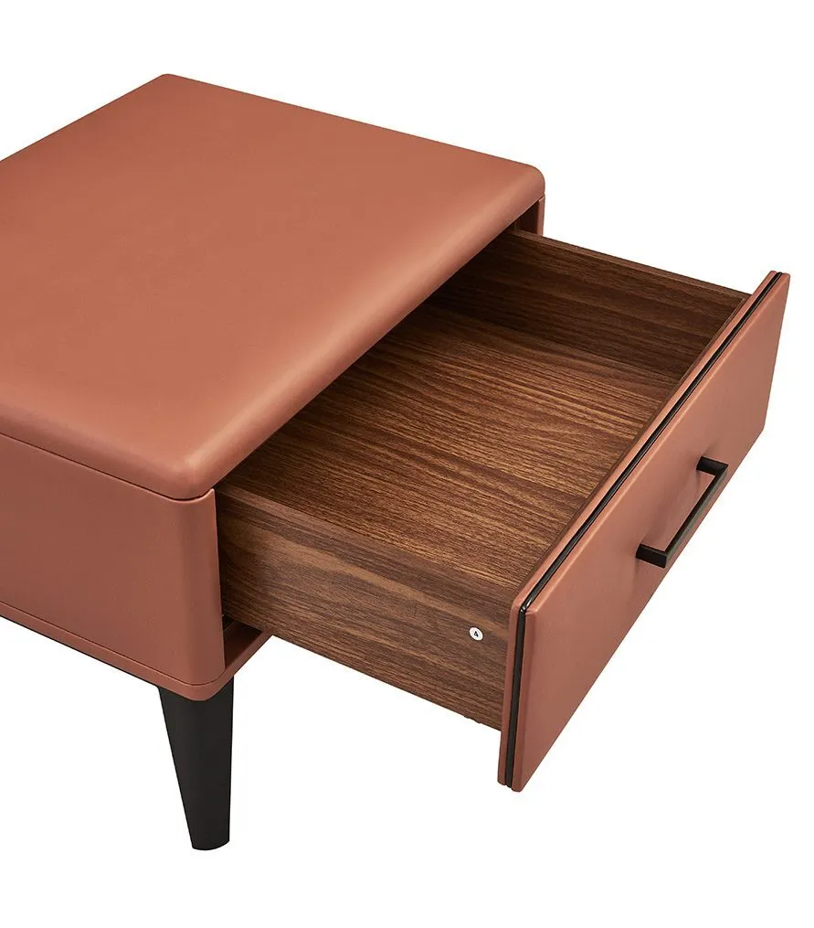 Тумба прикроватная CLOUDY представляет собой стильную мебель с уникальными характеристиками. Она выполнена из дерева и оснащена одним ящиком, изготовленным из МДФ, что обеспечивает прочность и долговечность. Ножки тумбы выполнены из металла, что придает ей стабильность и современный вид. Обивка изготовлена из высококачественной экокожи, что добавляет изысканности и уюту.
