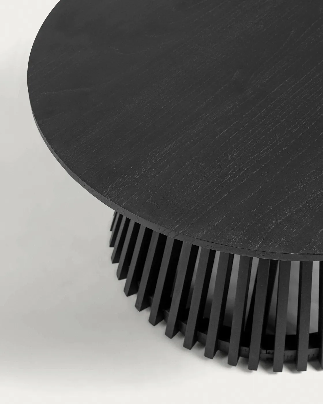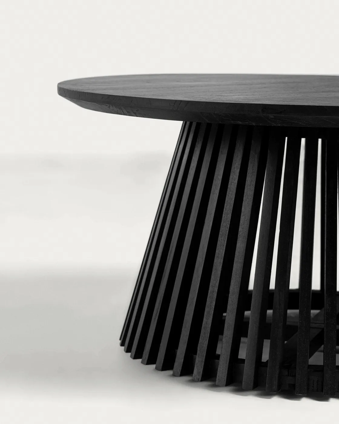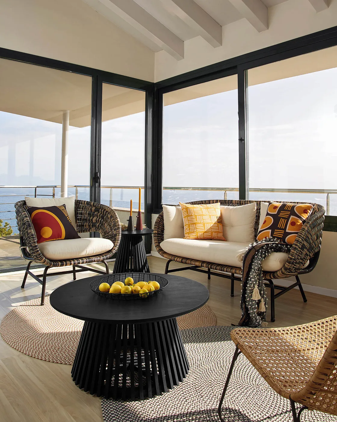 Журнальный столик Irune от фабрики La Forma (ex Julia Grup) – совершенное исполнение из дерева минди. Журнальный столик Irune – это потрясающий дизайн, который восторгает с первого взгляда. Полностью сделанный из дерева минди с черной отделкой, он уверенно заявляет о том, что может стать украшением самых требовательных обстановок. Кроме этого, стол устойчив к атмосферным воздействиям, поэтому присмотрите его для своей террасы! Стол полностью сделан из массива минди в черной отделке. Это экологически чистое изделие, изготовленное из древесины, выращенной в чистых лесах с контролируемой вырубкой. Столешница круглая, толщиной 2,5 см. Она установлена на конусную ногу с реечной структурой. Ширина основания ноги – 60 см. Для защиты древесины и улучшения устойчивости, снизу находится нейлоновая накладка. Также снизу находится крестовина, которая увеличивает прочность конструкции. Производитель предлагает два варианта диаметра столешницы – 80 и 50 см, с максимально допустимой нагрузкой 40 и 30 кг соответственно. Стол не рекомендуется использовать без навеса. Чистить только мягким моющим средством, без использования отбеливателей и абразивов. Размеры: ширина – 80/50 см, высота – 40 см, глубина – 80/50 см. Вес изделия – 14/8,4 кг. В коллекцию Irune также входят обеденные и кофейные столы в натуральной или черной отделке