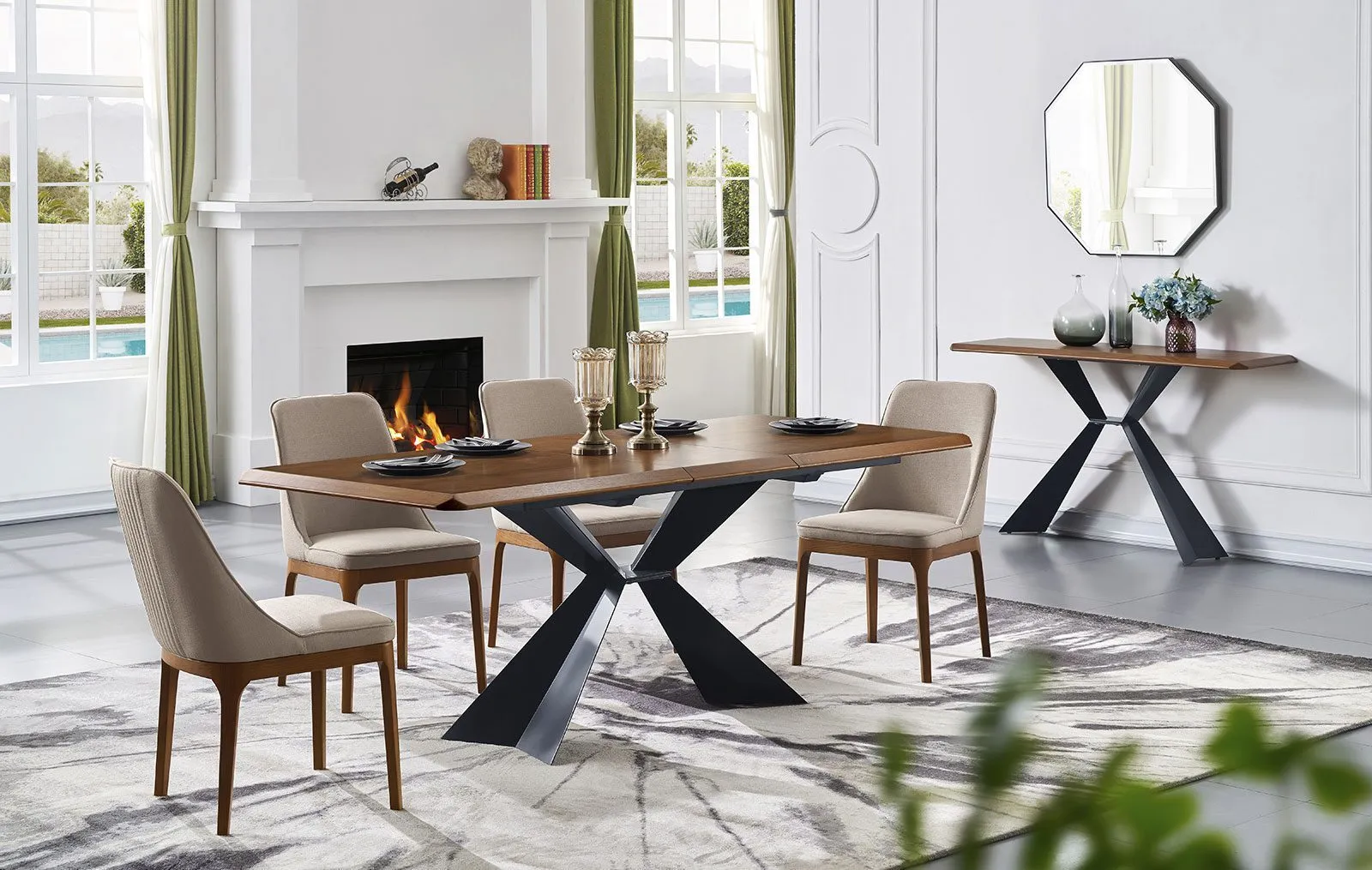 Рассматриваемый раздвижной стол VITA представляет собой продукт высокого качества, где столешница выполнена из натурального шпона ореха, придавая ей теплоту и натуральную элегантность.