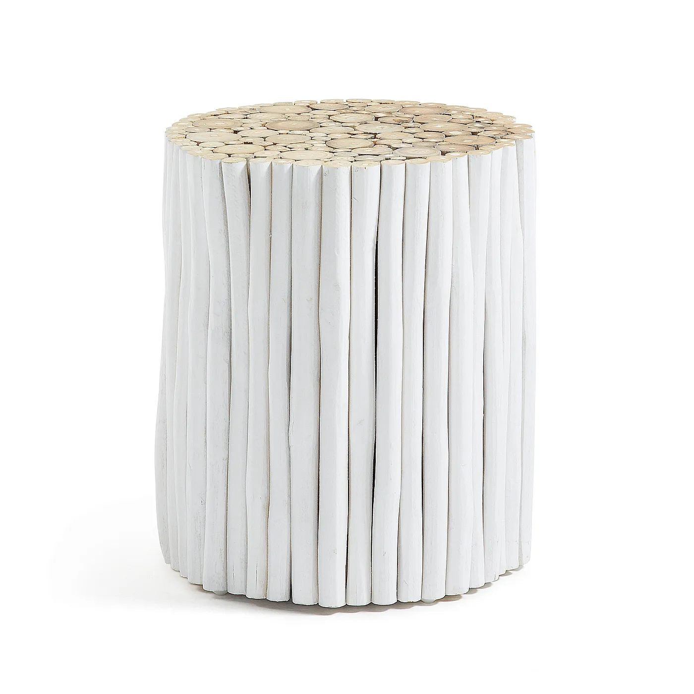 Столик Filippo белый от фабрики La Forma – универсальная подставка из тикового дерева. Столик Filippo удивительно органичен. Его структура полностью состоит из тикового дерева, а форма образована рельефом наружных веток. Этот предмет можно использовать в качестве столика, табуретки, подставки. Он хорошо встанет в гостиной, спальне и в коридоре. Ведь все, что создано самой природой, лаконично и гармонично. Стол круглой формы, состоит из веток тикового дерева. Ветки окрашены в белый цвет матовой эмалью. Снизу на каждой предусмотрен наконечник из нейлона для улучшения устойчивости. Максимальная нагрузка на столик не должна превышать 120 кг. Размеры: ширина – 35 см, высота – 40 см. Вес – 7,9 кг. Сборка не требуется. Допускается использовать только в помещении.