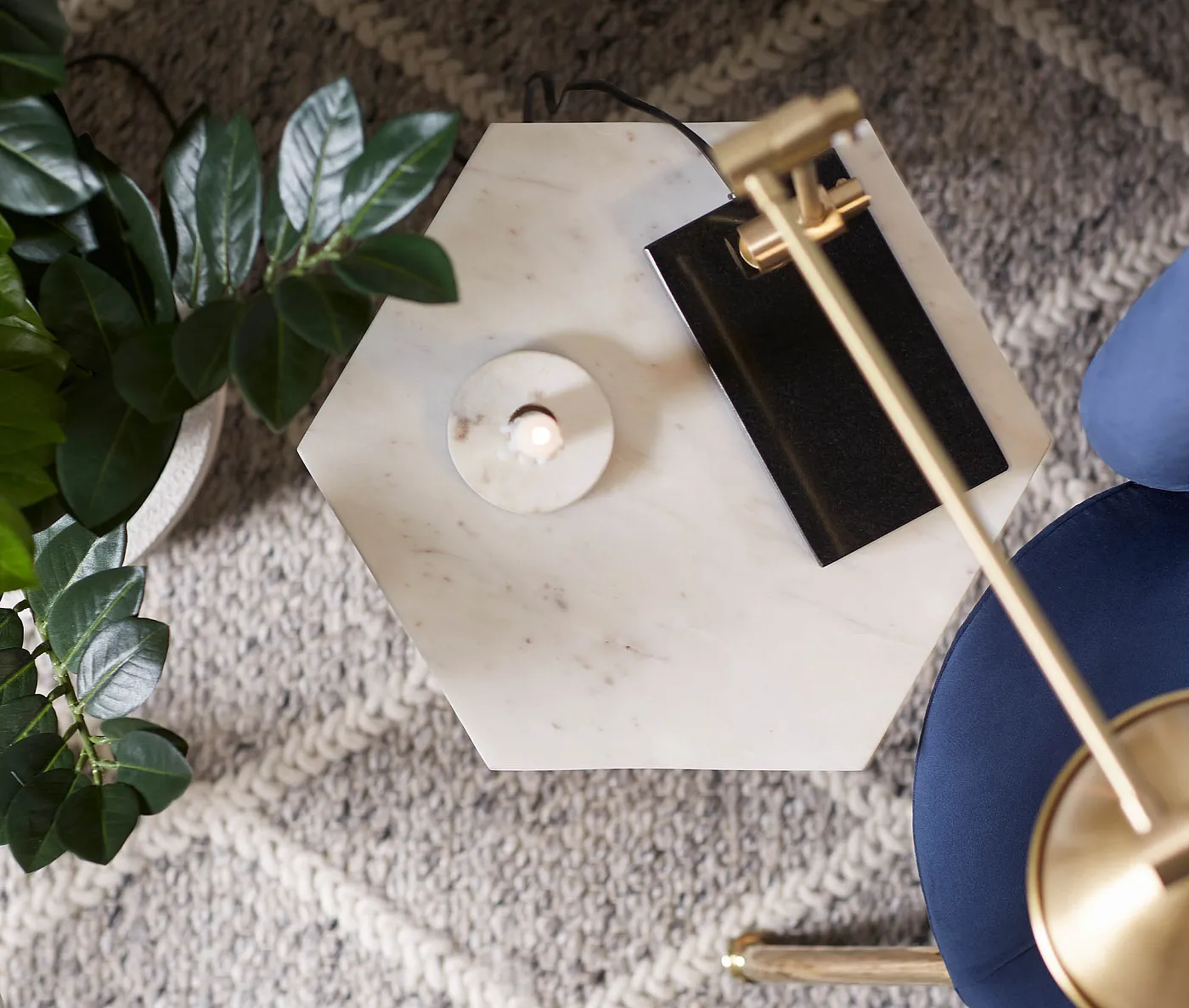 Столик Limit от фабрики La Forma – очаровательное дополнение к городскому интерьеру. Столик Limit непременно заинтересует тех, кто выбирает для своего дома нестандартные, но лаконичные конструкции. Эта модель объединила в себе прочность мрамора и изящество проволочного каркаса, оригинальную форму и практичное исполнение. Столик будет гармонично смотреться в любой комнате, сможет быть как вспомогательным, так и самостоятельным предметом мебели. Столик состоит из металлического каркаса и шестиугольной мраморной столешницы. Ее толщина – 1,6 см, что позволяет выдерживать нагрузки весом до 40 кг. Мрамор – практичный материал, который не портится под воздействием высоких температур, не трескается от ударов твердыми предметами. Каркас выполнен из нержавеющей стали с медным покрытием. Он имеет сварную структуру, состоящую из прямоугольных прутьев, шестиугольного основания и опоры, а также в кольца центре конструкции. Размеры: ширина – 37 см, глубина – 37 см, высота – 47 см. Вес изделия составляет 4,8 кг. Сборка не требуется.