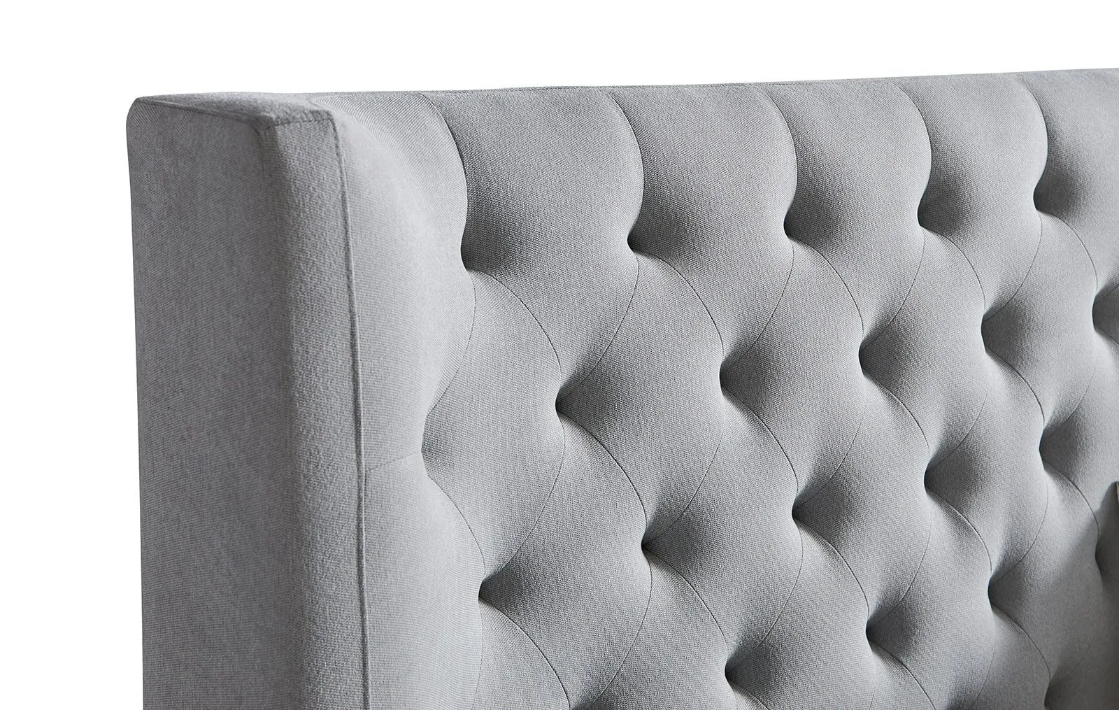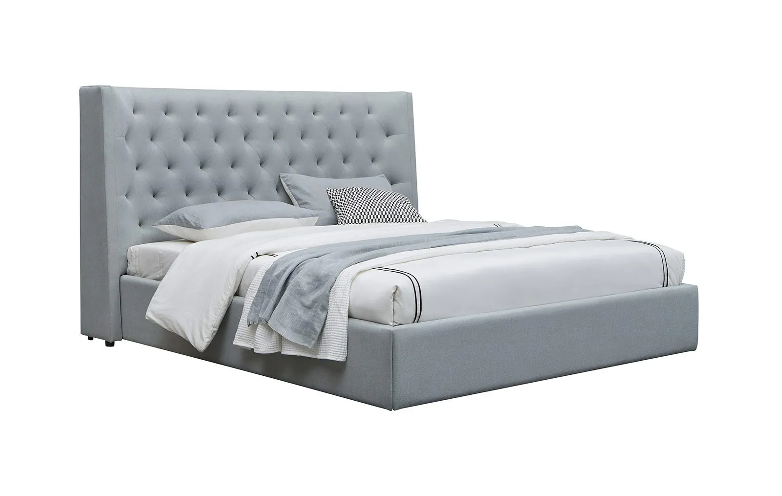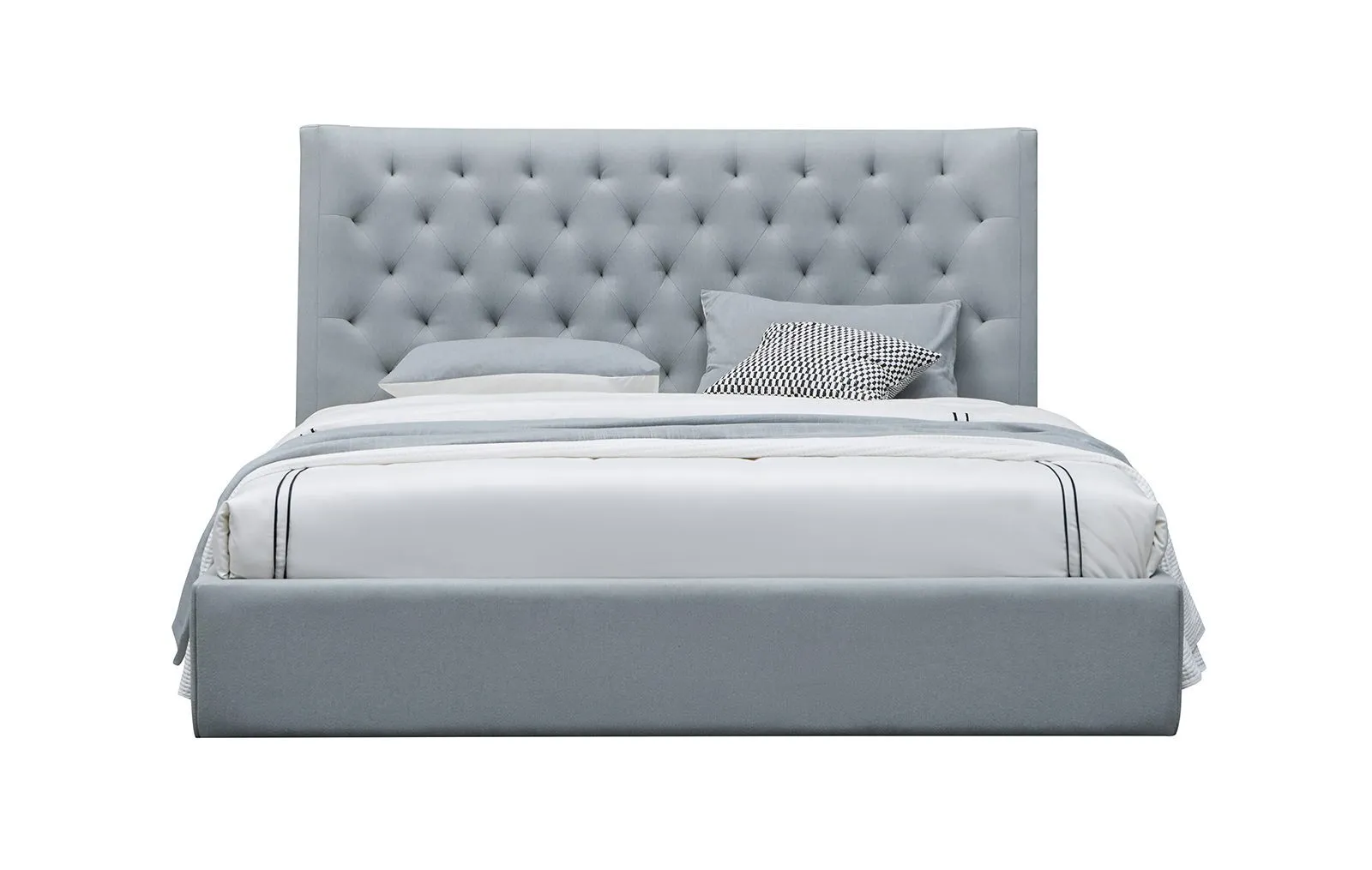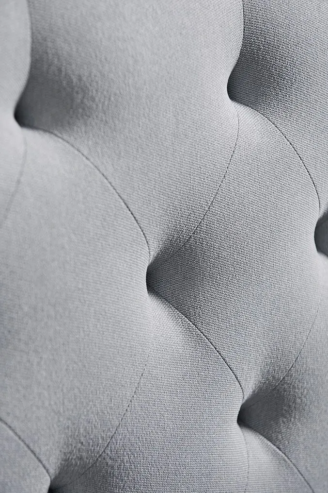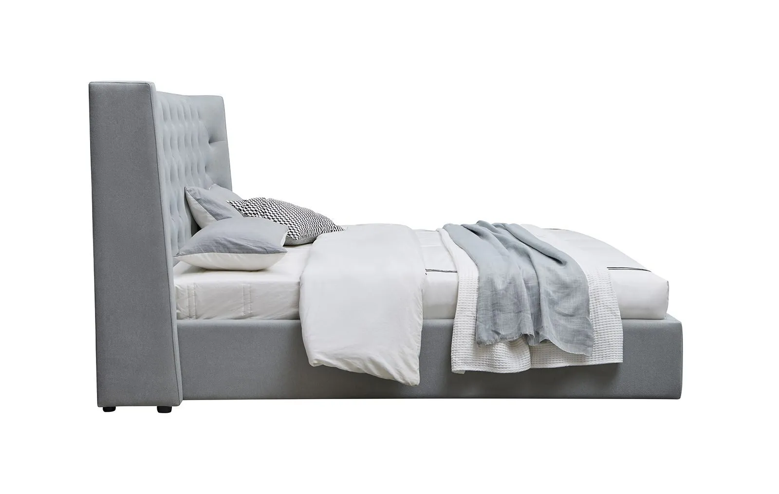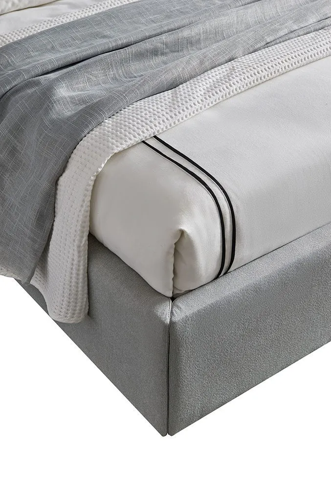 Гармоничный серый цвет обивки из ткани придает кровати стильный вид.