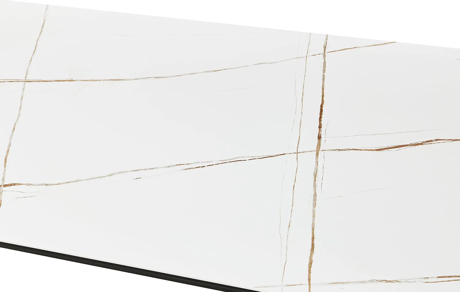 Стол Tiramisu с белой керамической столешницей MR35 представляет собой изысканное решение для интерьера с увеличенными размерами.#nbsp;Столешница стола выполнена из белой керамики, придавая ей стильный и элегантный вид. Прозрачное стекло толщиной 8 мм не только придает дополнительную прочность, но и подчеркивает изысканность дизайна.