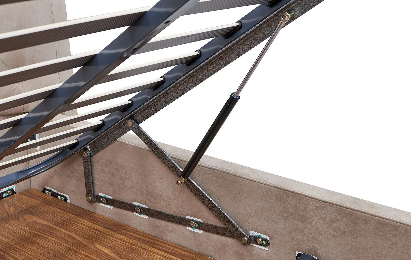 Данная модель оснащена ящиком для белья и подъемным механизмом на газлифтах