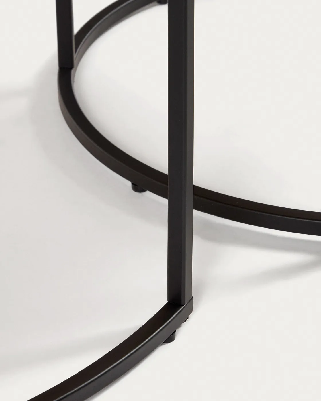 Yoana Набор из 2 приставных столиков из шпона ореха и черным металлом Ø 80 см / Ø 50 см